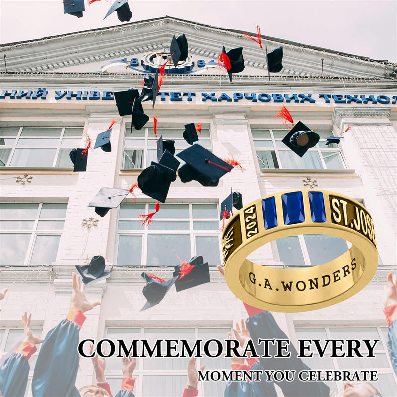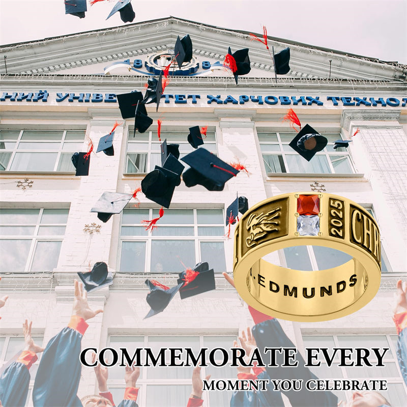 We offer a customization service where you can choose the right pattern and text according to the characteristics of your class, with a variety of sizes to choose from, making the graduation Ring even more personalized.