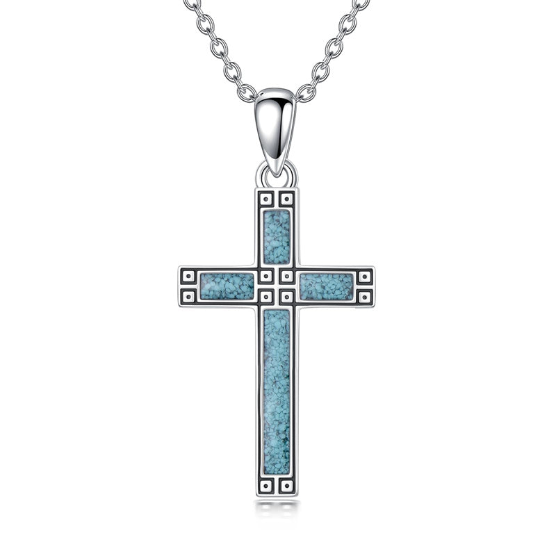 CROSS NECKLACE: As the principal symbol of Christianity, the cross symbolizes triumph over suffering, sacrifice, and the profound connection between Christ and his followers. Inlaid with stone fragments of blue opal, this cross necklace is a unique protection necklace! Surprise your love with this blue opal necklace!