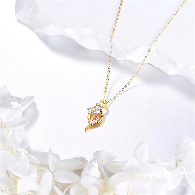 10K 14K 18K Yellow Gold Cubic Zirconia Infinity Mother Daughter Pendant Necklace for Women