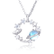 This exquisite necklace features a luminous central moissanite set within an intricate bow-shaped pendant, adorned with clusters of smaller sparkling moissanites along its curved edges. Suspended from the bow are three polished silver bell charms, adding playful movement and sophistication. Crafted with precision, the pendant hangs from a delicate oval-link chain, perfect for everyday wear or special occasions. The combination of brilliance-cut stones and sleek metallic finishes creates a harmonious blend of classic elegance and modern charm. Ideal for gifting or self-indulgence, this piece embodies timeless beauty while offering versatility for various styles. Its meticulous design captures attention with every glance, making it a cherished addition to any jewelry collection.
