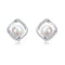 These exquisite silver stud earrings showcase a modern geometric design, featuring interconnected square frames adorned with sparkling Zircon-like crystals. The intricate pattern creates a luminous starburst effect, perfect for elevating any outfit. Set against a pristine white surface with a subtle peach gradient, the earrings are framed by softly blurred white flowers, adding a touch of natural elegance. Crafted with precision, their minimalist yet bold aesthetic makes them ideal for both casual and formal wear. The combination of metallic sheen and delicate floral backdrop highlights their versatility, making them a timeless accessory for everyday style or special occasions. Each piece reflects light beautifully, ensuring they catch the eye while maintaining a refined sophistication. Whether worn alone or paired with other jewelry, these studs exude confidence and charm, blending contemporary artistry with classic appeal.
