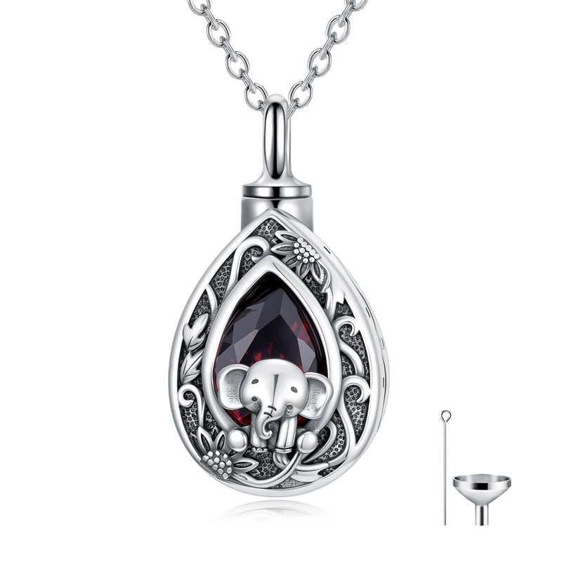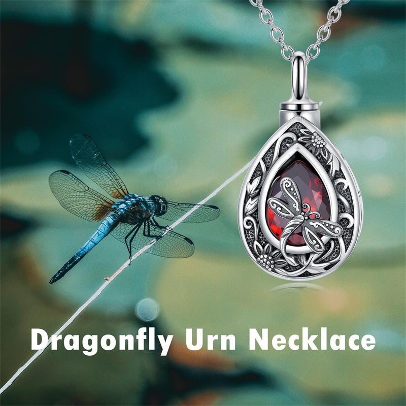 Sterling Silver Personalized Red Cubic Zirconia Butterfly Hummingbird Urn Necklace for Ashes