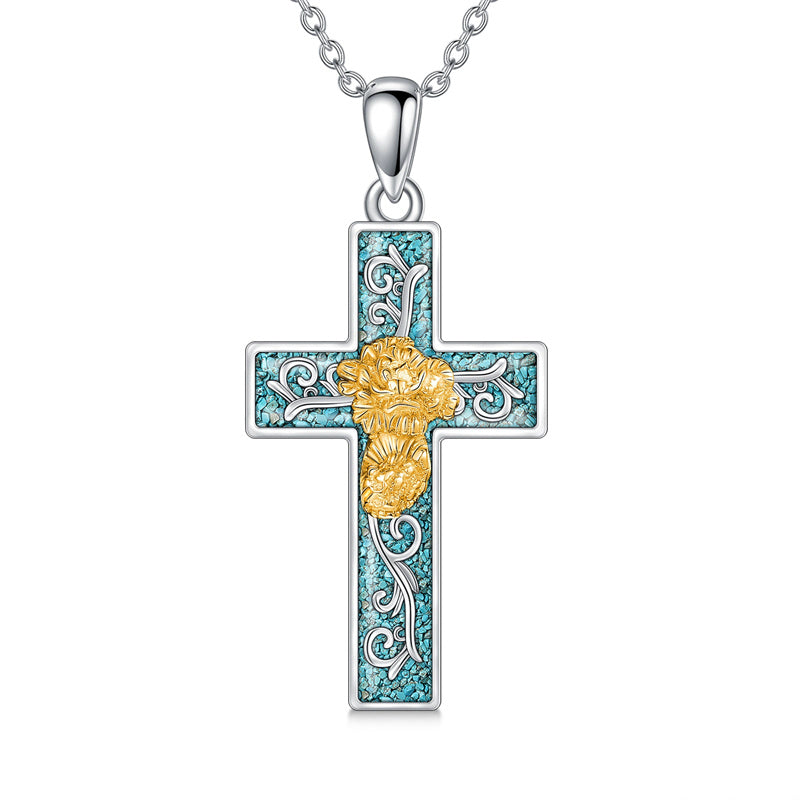 Lily Cross Necklace: Lily is the birth flower of May. This plant is decorated with exquisite small bells and has the sweetest smell. Its name means "return to happiness". It represents all the little things in life that can bring us happiness. If you want to give a lover born in May, the Lily cross turquoise necklace is your best choice!