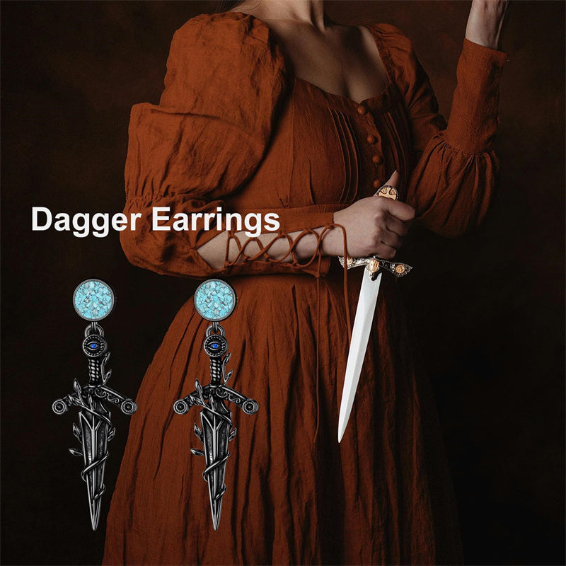 Black Turquoise Dagger Eye Earrings:Retro Rock style dagger cross earrings with blue evil eye, fashionable and cool. Perfect for costume parties, or for those who collect swords and daggers, or those who like heavy metal music or bands. Wearing these sword earrings to catch someone's attention.