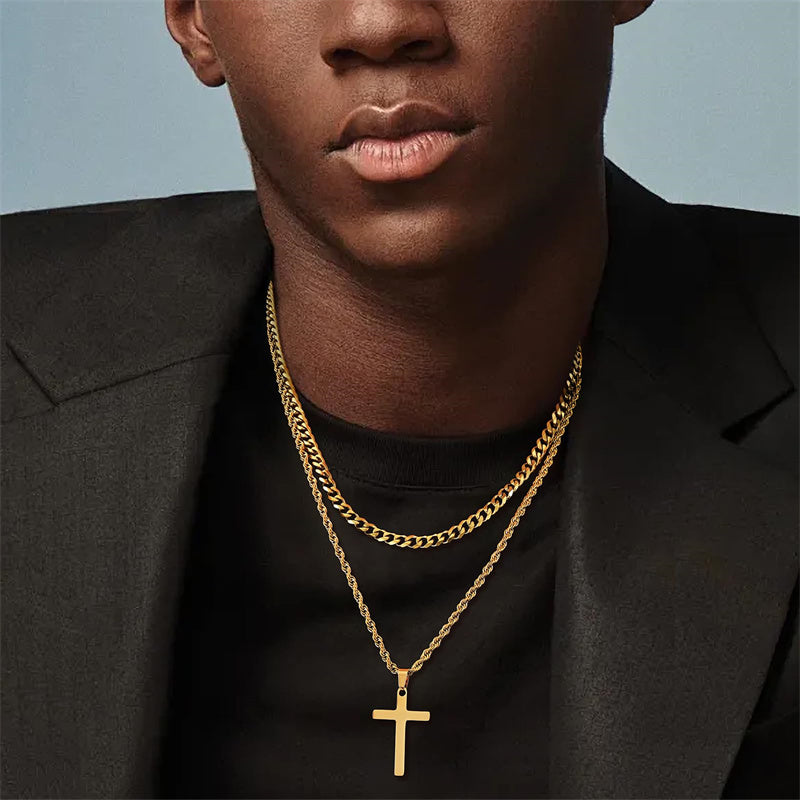 Chain Length: Stainless steel 3.0mm 22-inch rope chain + 5.0mm 20-inch Cuban chain