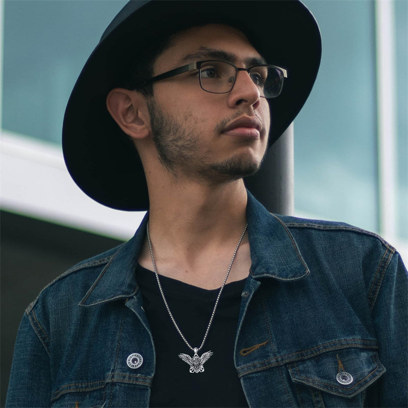 Owl:This owl necklace is designed in the style of an owl with an eyepatch with its back against a anchor.This owl pendant necklace symbolises bravery,nobility,freedom and courage.The unique shape of the anchor necklace makes it a great choice for unisex jewelry.