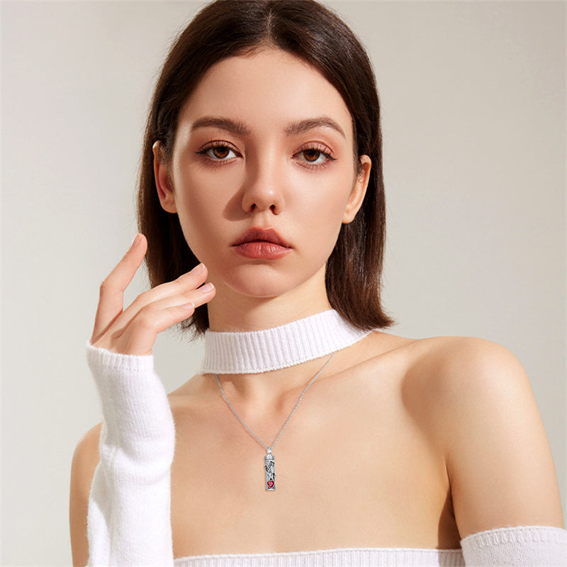 June Birthstone Birth Flower Urn Necklace: Rose is a birth flower of June, a symbol of romance, love, beauty, and courage.