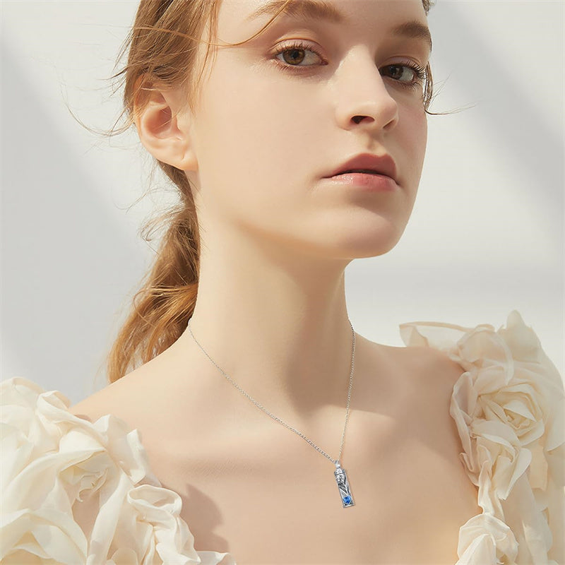 July Birthstone Birth Flower Urn Necklace: Larkspur is a birth flower of July, a symbol of love, devotion, positivity, and sincerity.