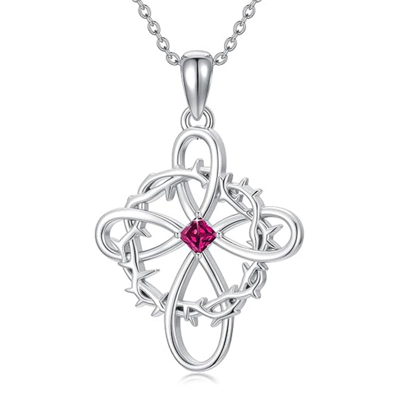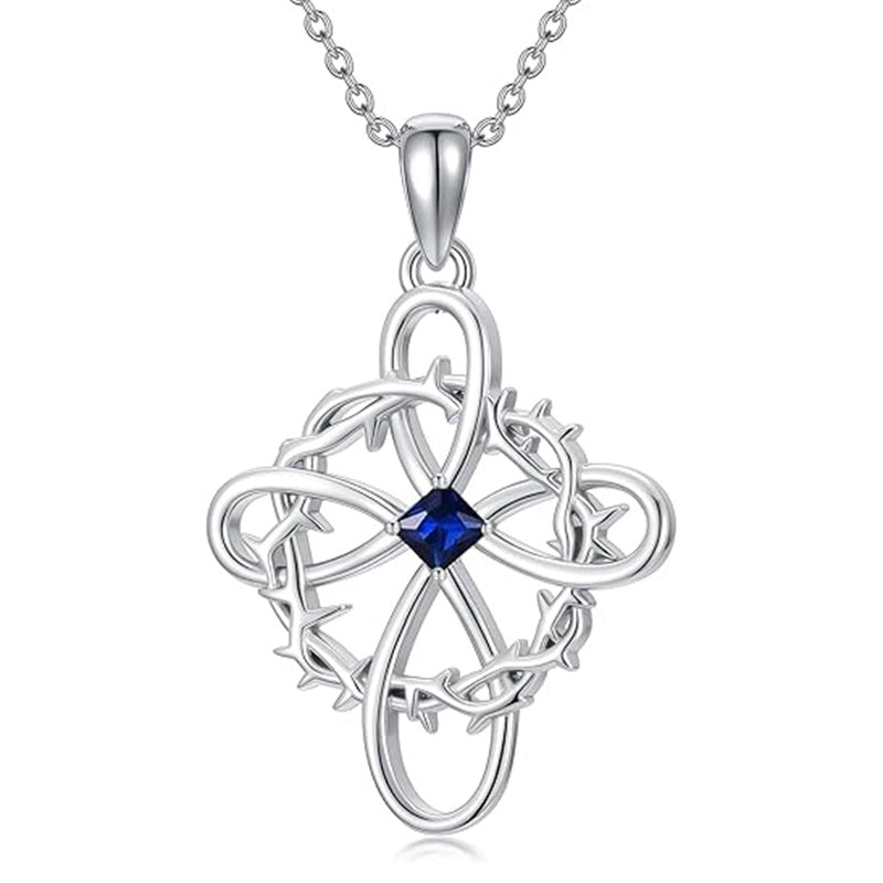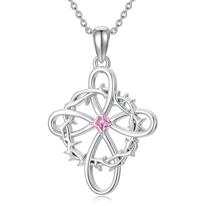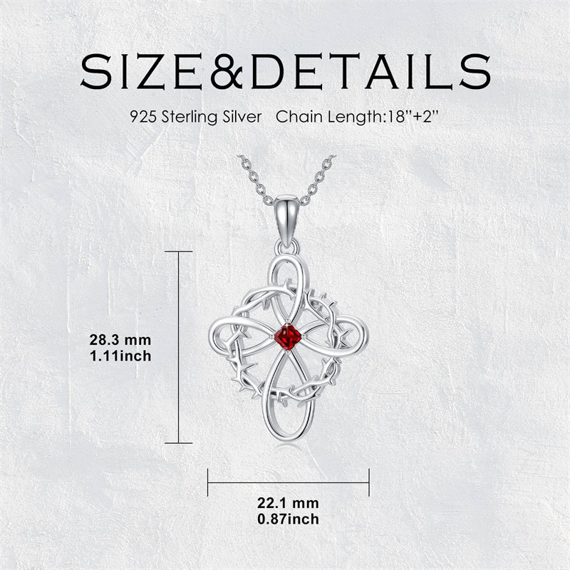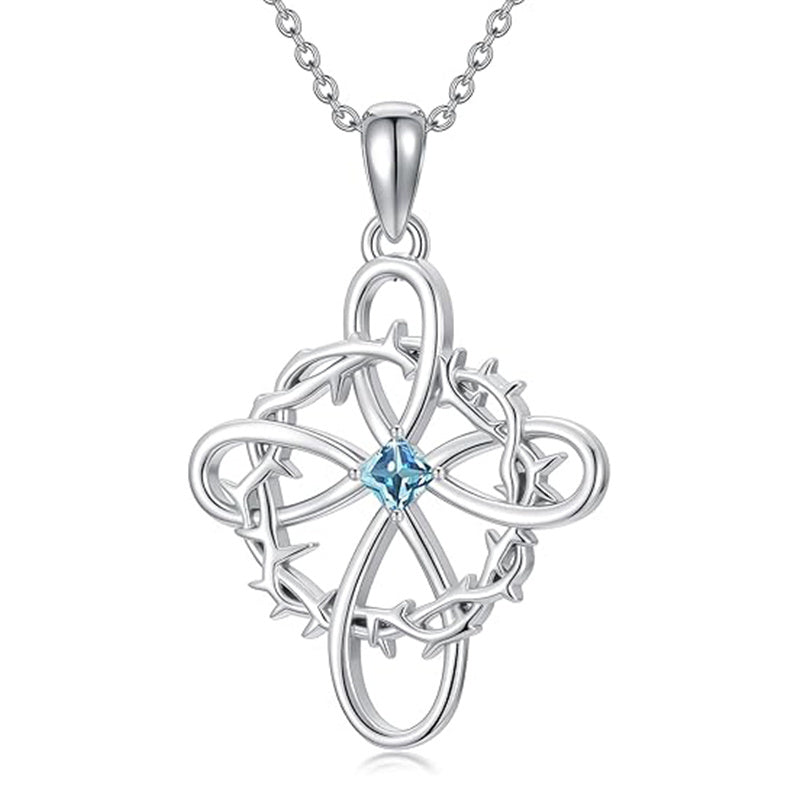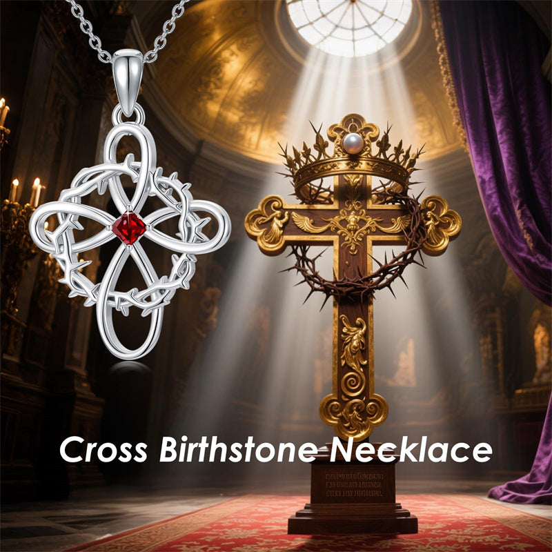This birthstone necklace combines a twisted cross and a crown of thorns, shiny and lovely. The twisted cross symbolizes sacrifice and suffering, while the crown of thorns represents the trials and tribulations faced in life.