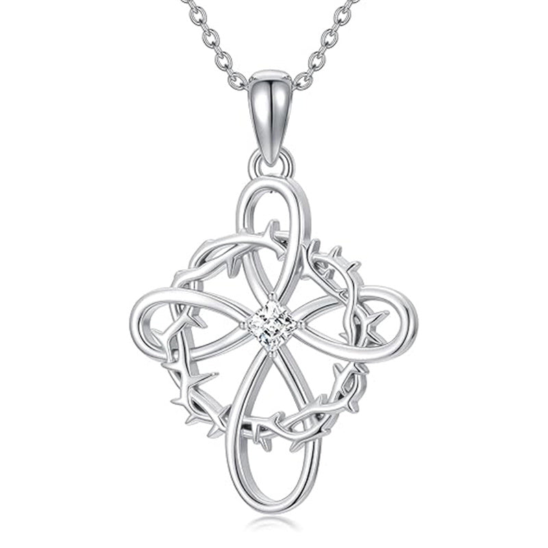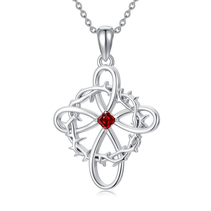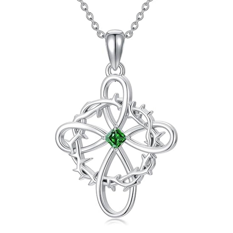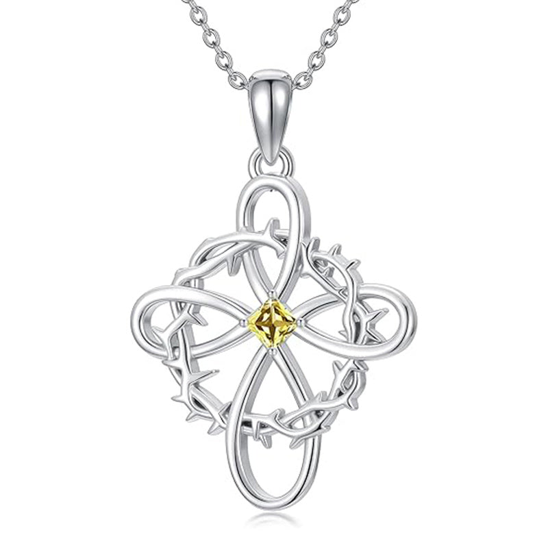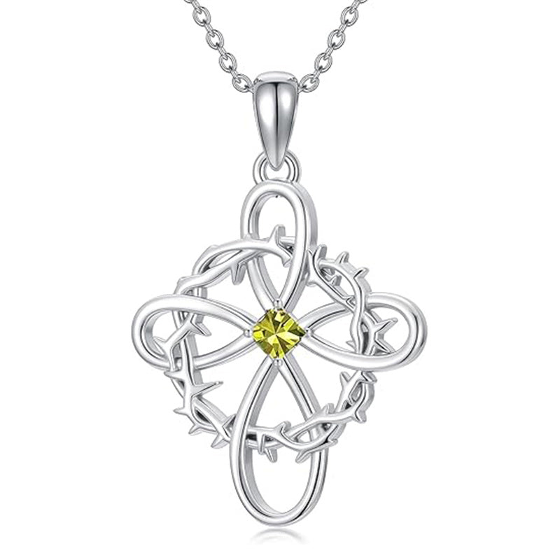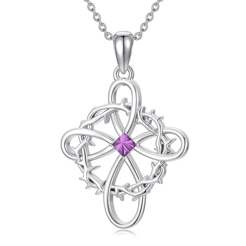 This birthstone necklace combines a twisted cross and a crown of thorns, shiny and lovely. The twisted cross symbolizes sacrifice and suffering, while the crown of thorns represents the trials and tribulations faced in life.