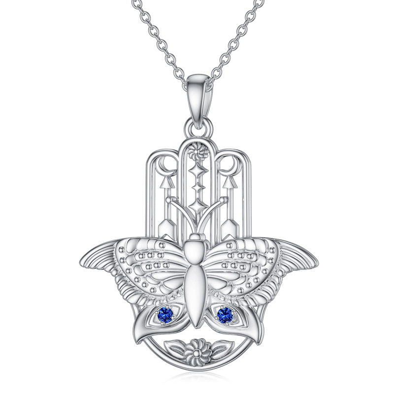 The hamsa hand is a sign of protection, also named hand of fatima, butterfly and evil eye design could make you more attractive, keep bad luck away from you and bring good luck. The butterfly hamsa fatima hand necklace embellished with a blue evil eye, protect you from harm.