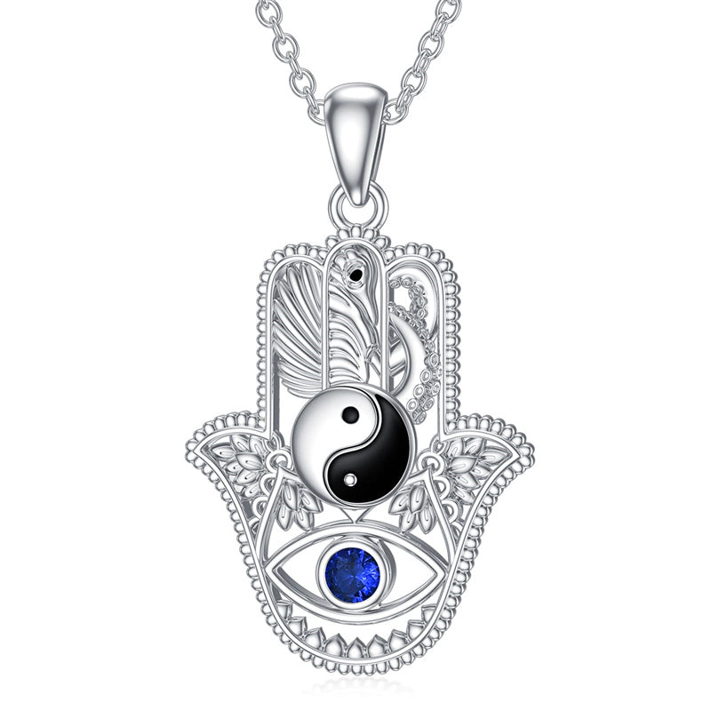 Yin Yang Hamsa Necklace: The hamsa hand is a sign of protection, also named the hand of Fatima. The evil eye design could keep bad luck away from you and bring good luck. The yin yang hamsa necklace, embellished with a blue evil eye, protects you from harm.