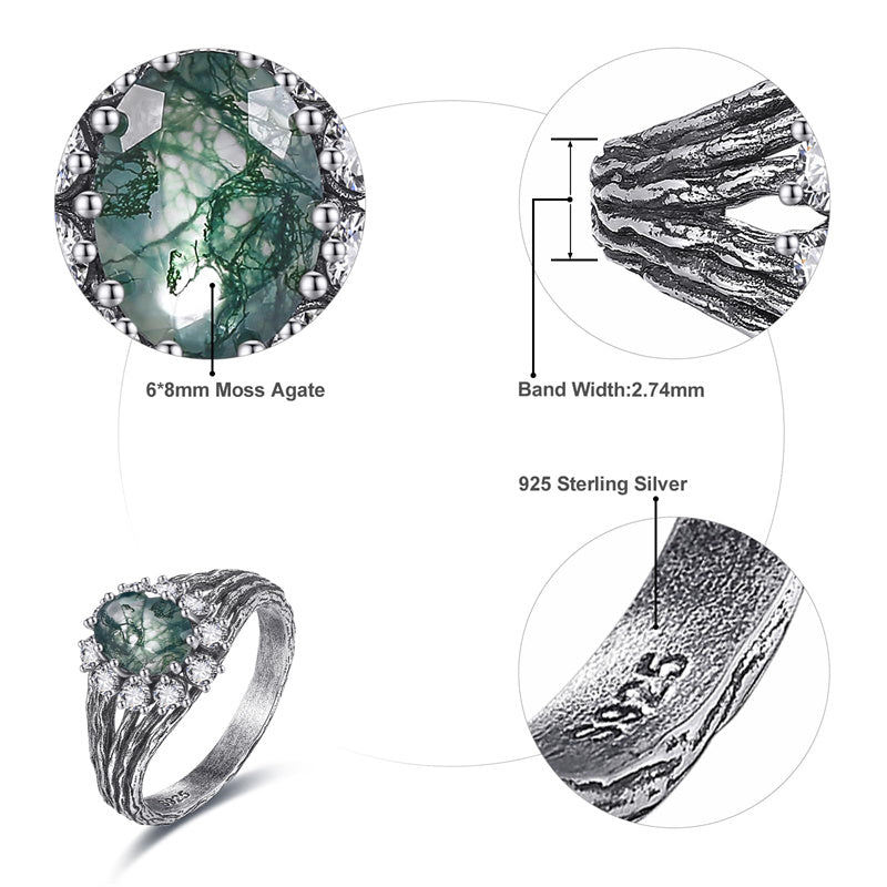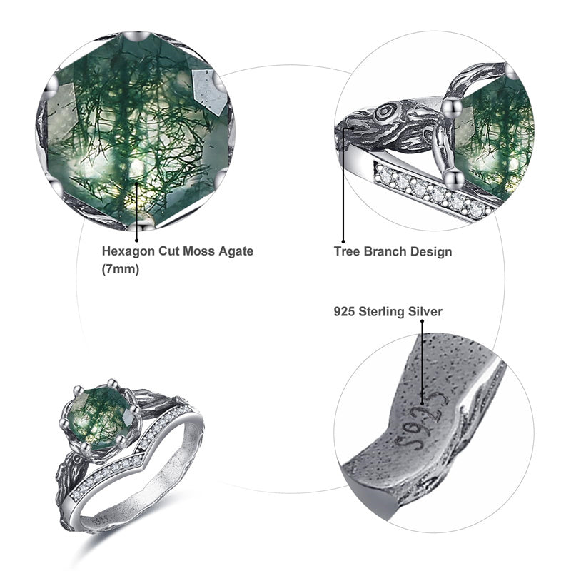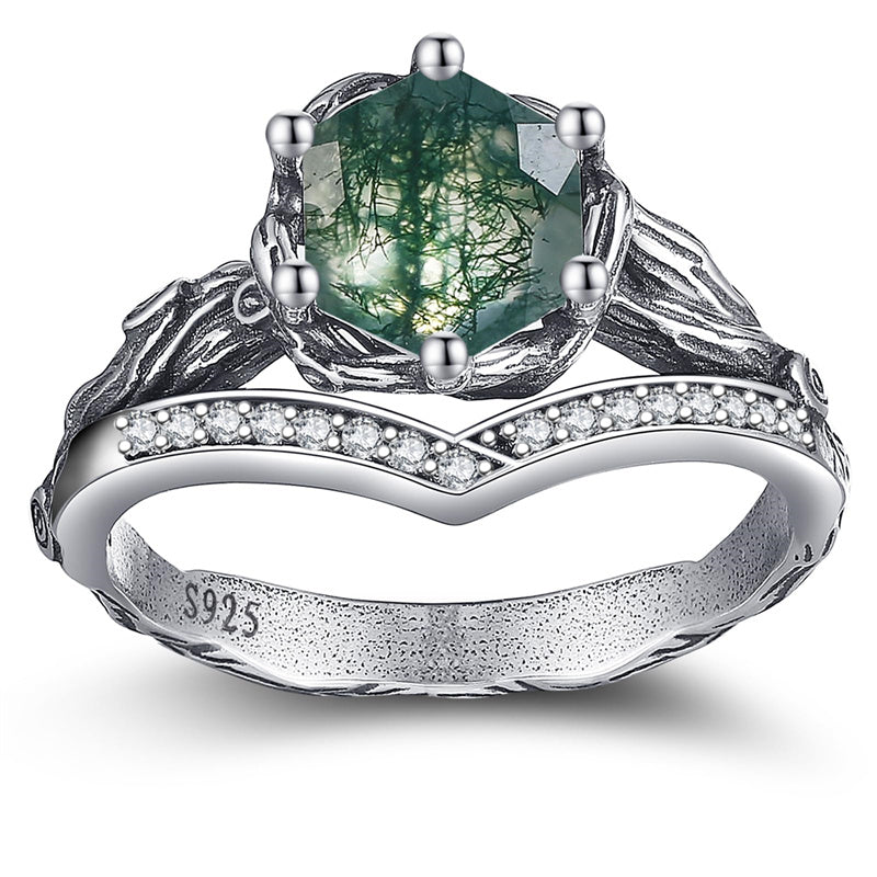 Sterling Silver Moss Agate Moonstone Branch Engagement Wedding Promise Ringfor Her
