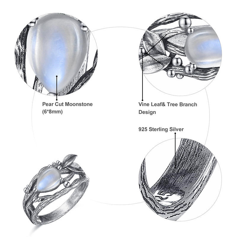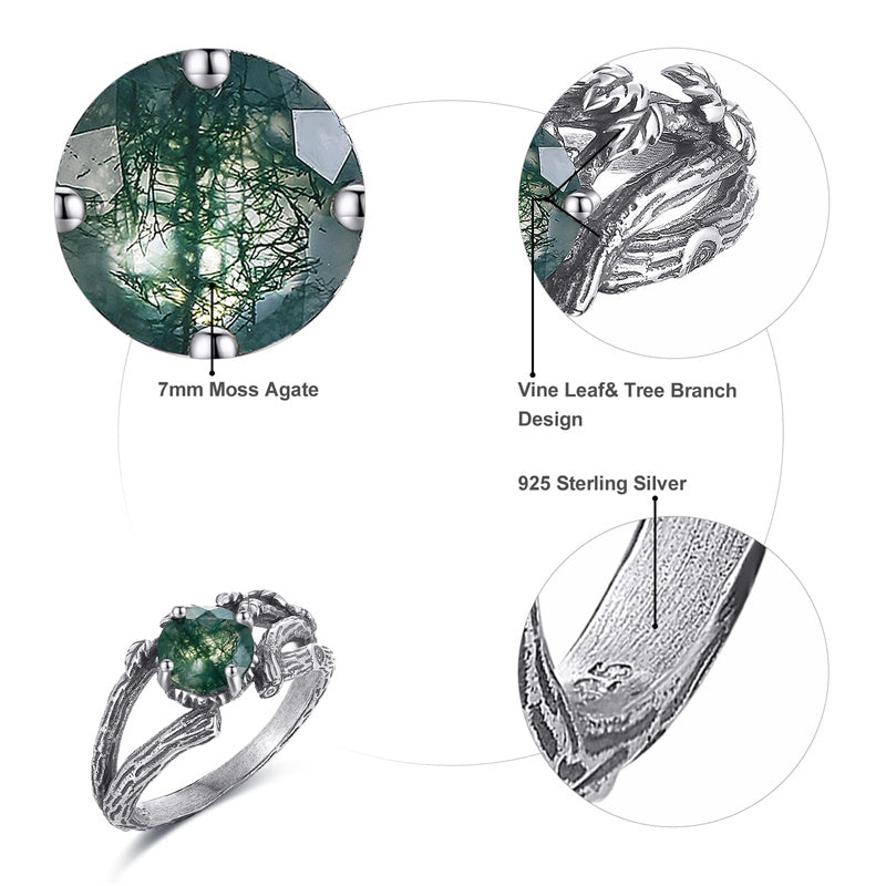 Sterling Silver Moss Agate Moonstone Branch Engagement Wedding Promise Ring for Her
