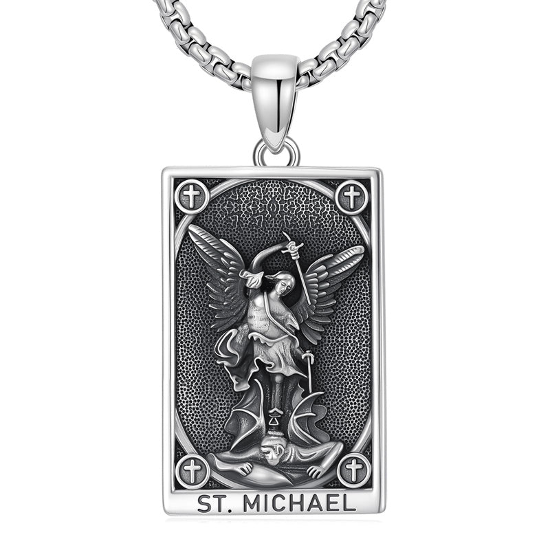 Saint Michael: The St. Michael pendant. It strikingly portrays St Michael the archangel in a victorious stance, flanked by cross motifs, which lends a solemn and potent religious vibe. Wearing this protection amulet pendant necklace lets people feel his sacred guardianship.