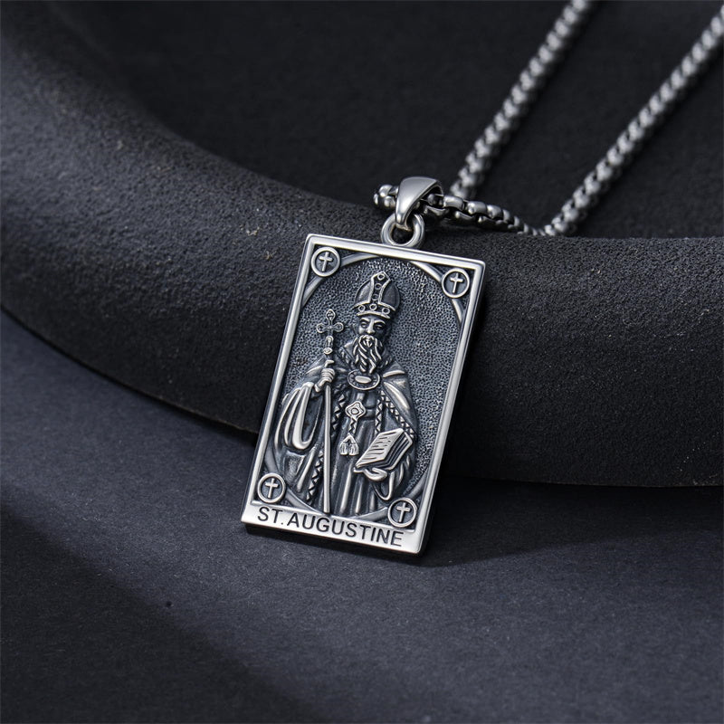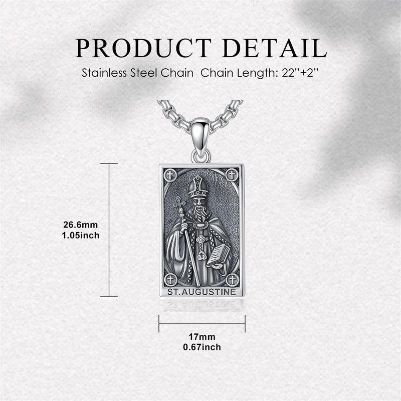 Saint Augustine: St. Augustine necklace. Protection medals, Christian necklaces for men, uniquely designed, achieve inner peace, guarding and blessing people, bringing good luck, and protecting people from disasters. Very suitable for daily wear.