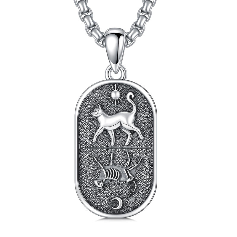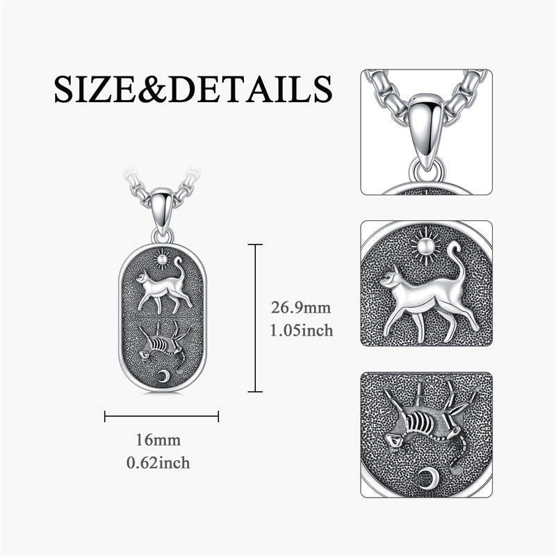 CAT NECKLACE: Schrödinger's Cat is a thought that a hypothetical cat may be considered both alive and dead simultaneously, because its fate is linked to a random event that may (or may not) occur. Featuring the sun and moon, this cat necklace is meaningful and unique. Surprise your loved one with this cat jewelry!