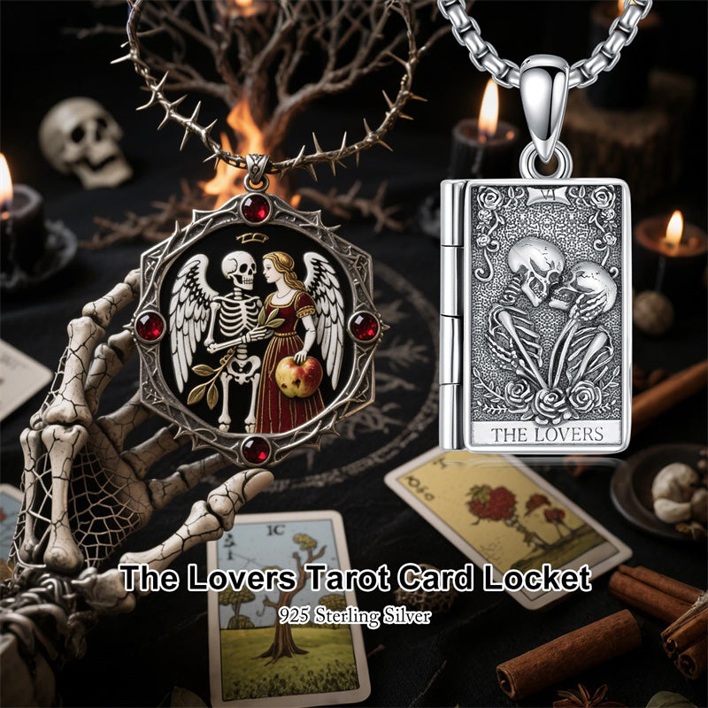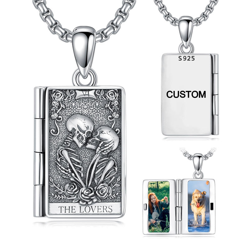 Lovers:The Lovers, the 7th tarot card, signifies a strong bond and harmony between two individuals. The Lovers tarot card necklace can bring encouragement and support to make brave, heartfelt choices. With a locket pendant, this locket necklace can be unique personalized photo gifts for you! Surprise you love with this lover necklace!