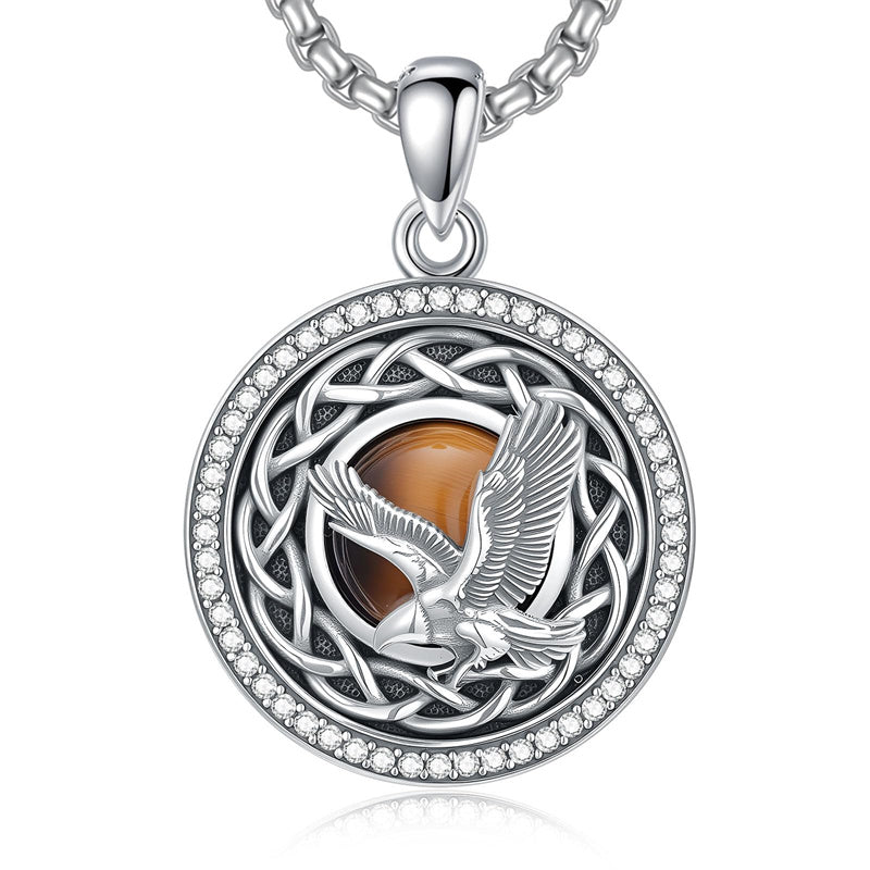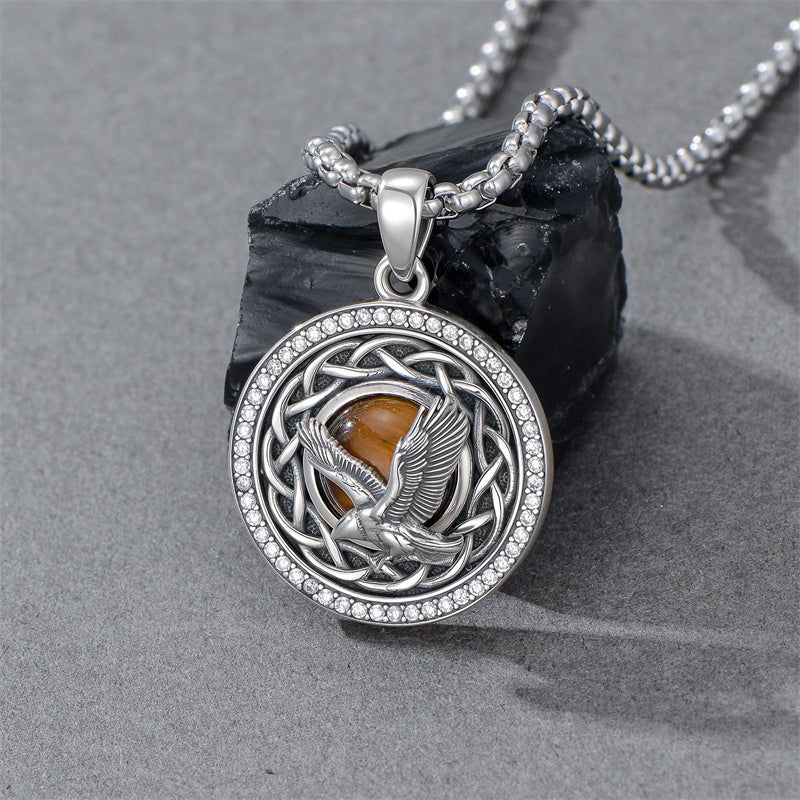 Tiger Eye Eagle: The eagle represents strength. Tiger Eye is a stone of health, it extracts negative energy from the chakras, enhances commitment to others and to one's self.. The eagle tiger-eye stone necklace represents the perfect combination of courage and wisdom, allowing the wearer to remain strong and calm in the face of challenges and difficulties, and to persevere in pursuing their goals and ideals.