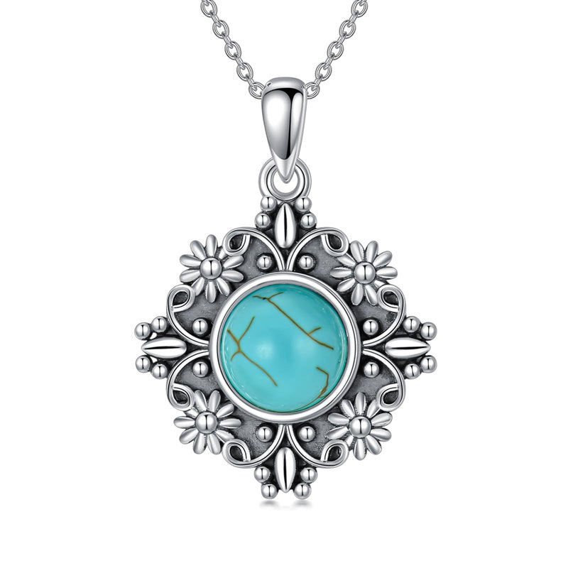 Turquoise Necklace for Women: We combine the daisy flowers with a beautiful turquoise. Wear this turquoise necklace to clear away negative energy, stimulate your inner strength, attract wealth, and bring you good luck.