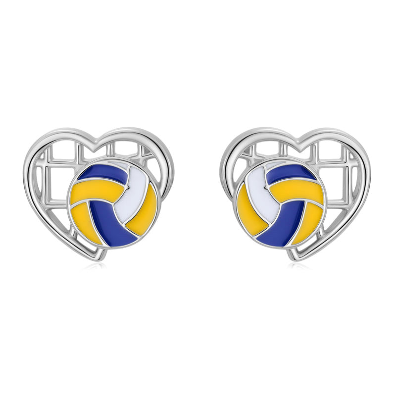 Volleyball: Volleyball earrings are designed for volleyball enthusiasts. Crafted with a drip-gum technique, the earrings feature vivid details and feature the volleyball net and volleyball motif. Show off your love for the sport with these volleyball stud earrings.
