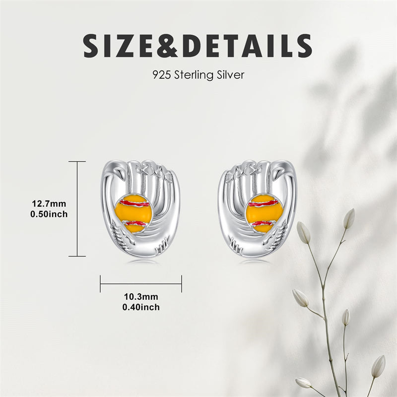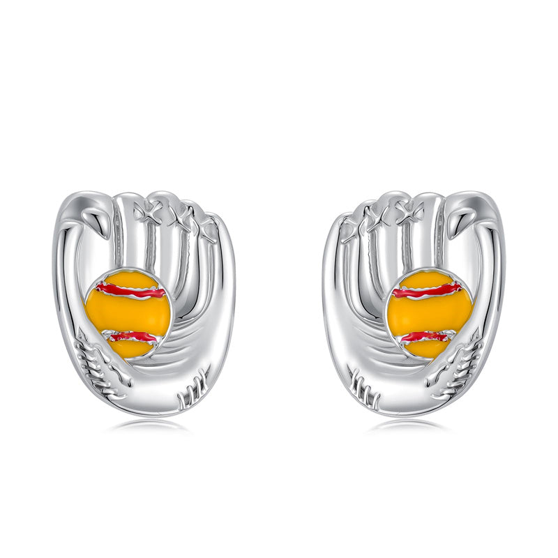 Softball: These softball earrings are designed for softball enthusiasts. Crafted with a drip-gum technique, the earrings feature vivid details and the iconic glove and softball motif. Show off your love for the sport with these softball stud earrings.