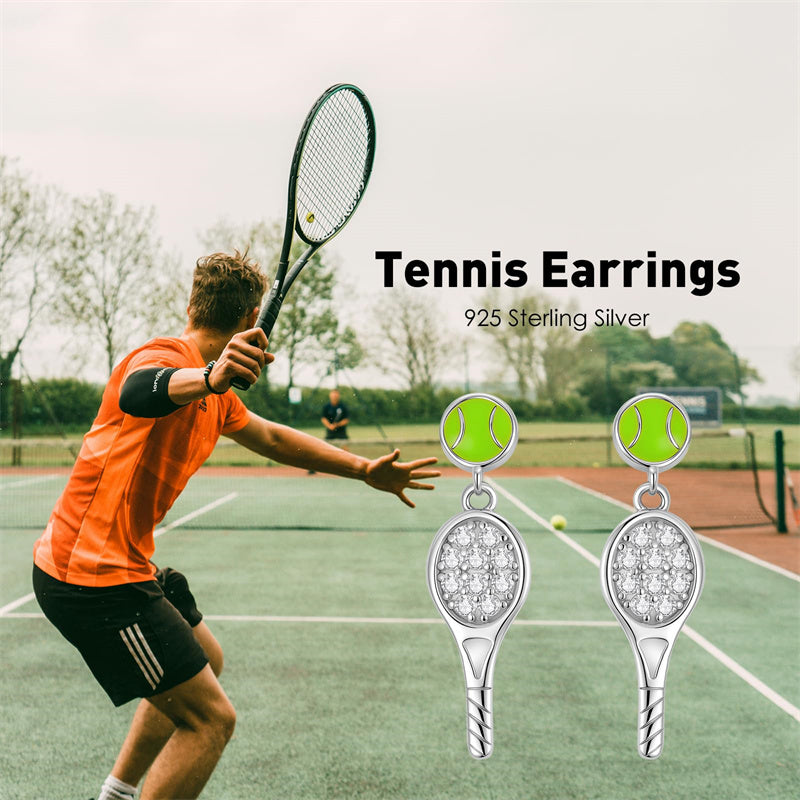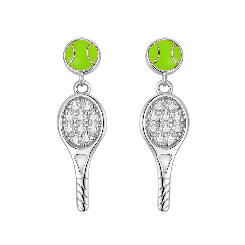 Tennis: These tennis earrings are designed for tennis enthusiasts. Crafted with a drip-gum technique, the earrings feature vivid details and feature the tennis rackets and tennis motif. Show off your love for the sport with these tennis stud earrings.