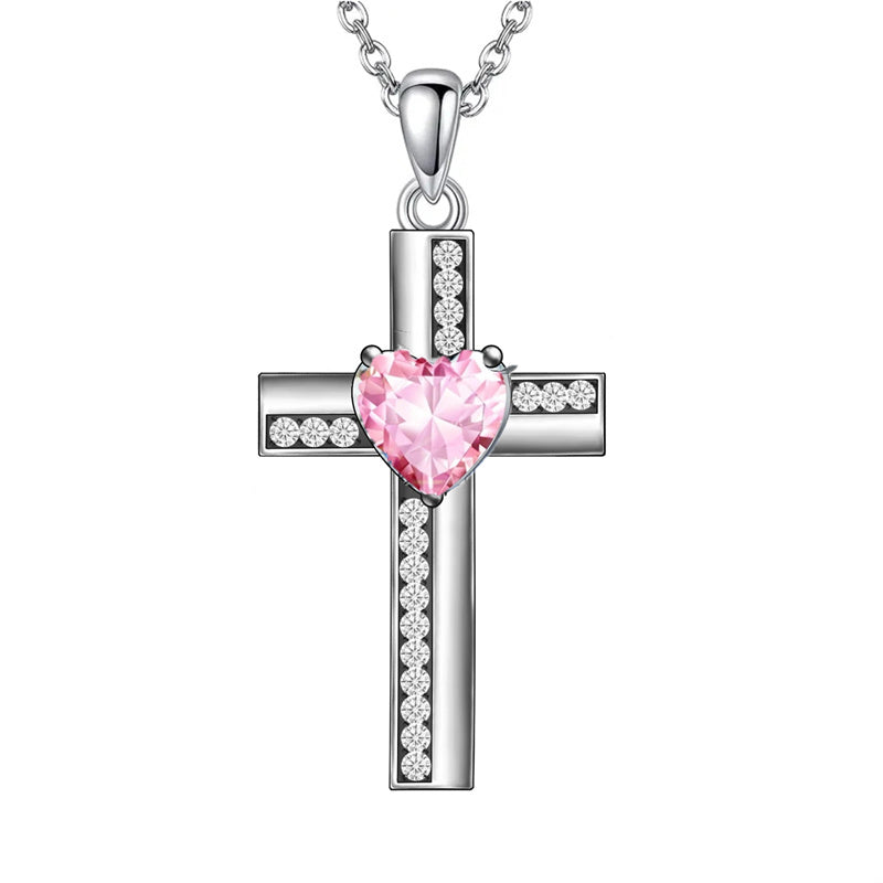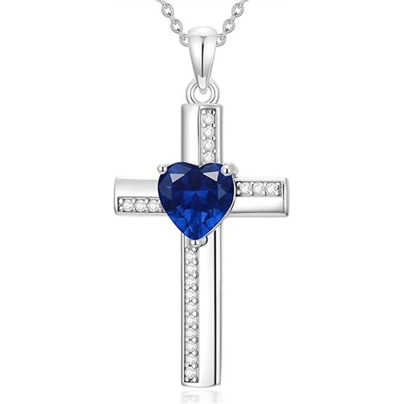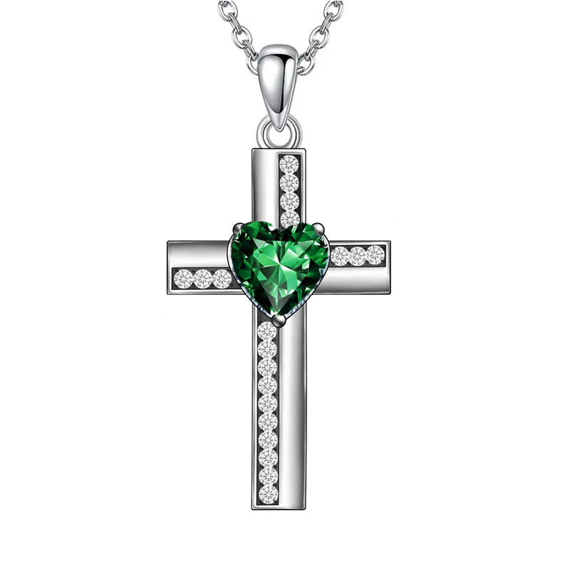The Cross Birthstone Necklace design features a cross pendant adorned with a birthstone of your choice, representing your birth month.