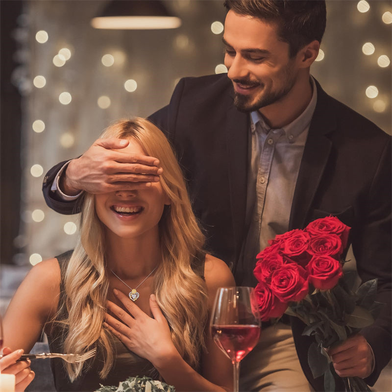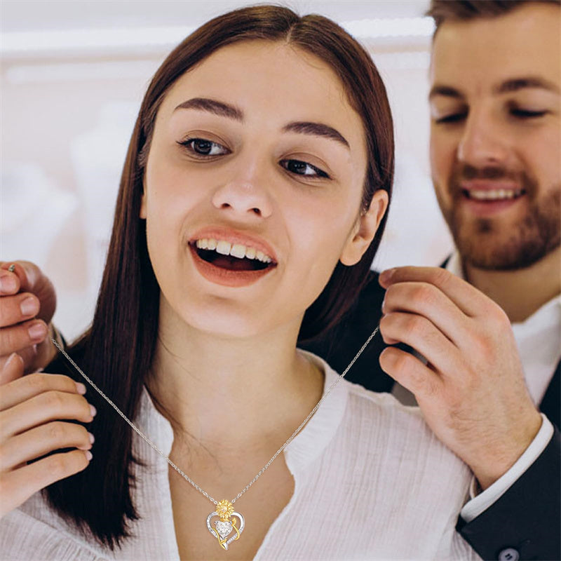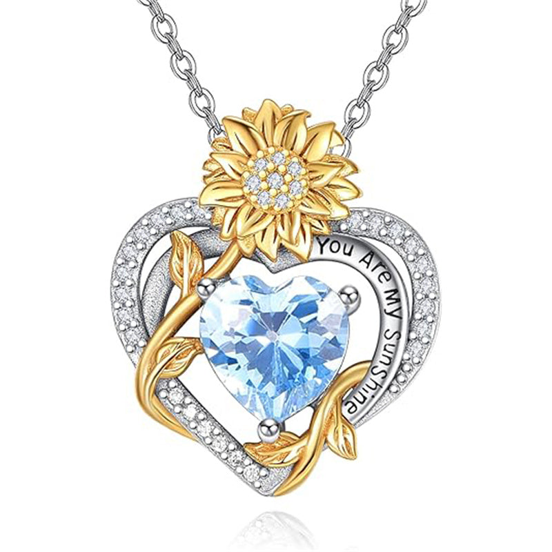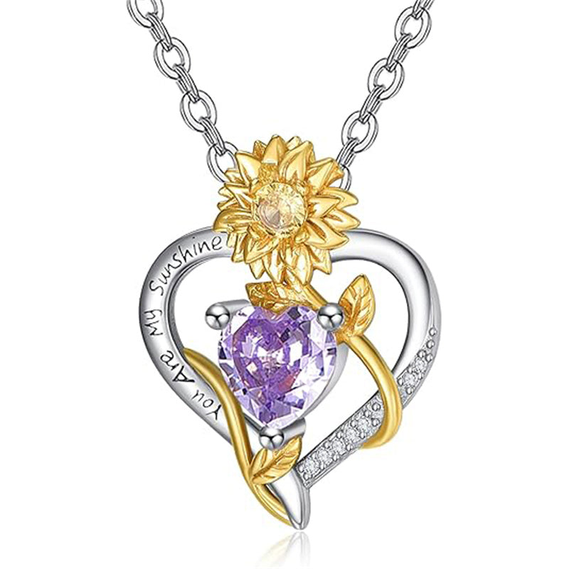 The double heart pendant engraved with the words "You are my sunshine" symbolizes "where there is sunshine, there are sunflowers. You are my sunshine, express your love and remind her to keep elegant and smile, it is the best sunshine gift. The double-heart design symbolizes love for each other, and no words are needed between the two hearts. The sunflower birthstone necklace makes your relationship closer and is a good choice to express your love for her on a special.