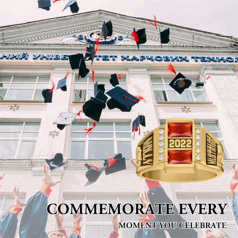 We offer a customization service where you can choose the right pattern and text according to the characteristics of your class, with a variety of sizes to choose from, making the graduation Ring even more personalized.