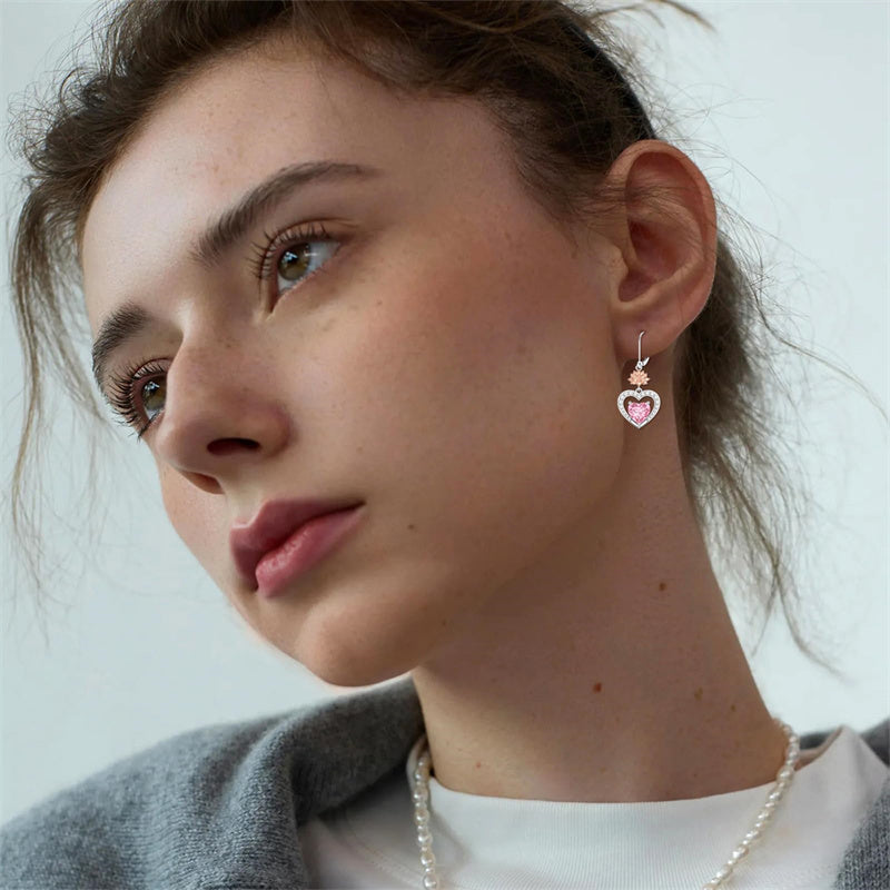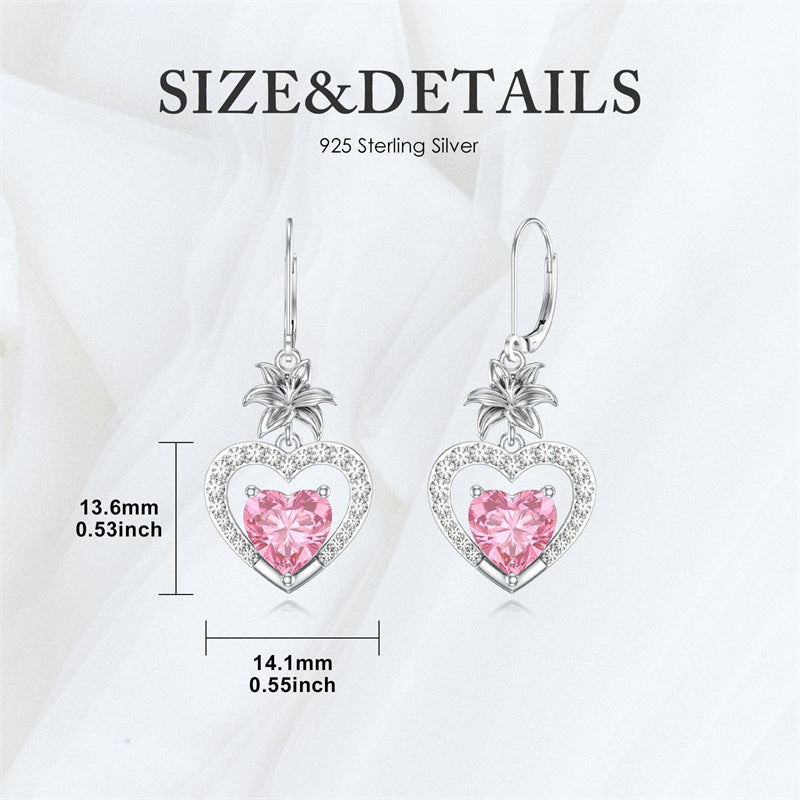 Pink Lily: These women's earrings feature lily flowers and heart-shaped pink zircon stones, symbolizing purity, love, and beauty. The delicate lily represents innocence and devotion, while the heart-shaped stones add a touch of romance and femininity. The soft pink color evokes a sense of gentleness and compassion. Together, these elements create a design that celebrates love, elegance, and the innate grace of women.