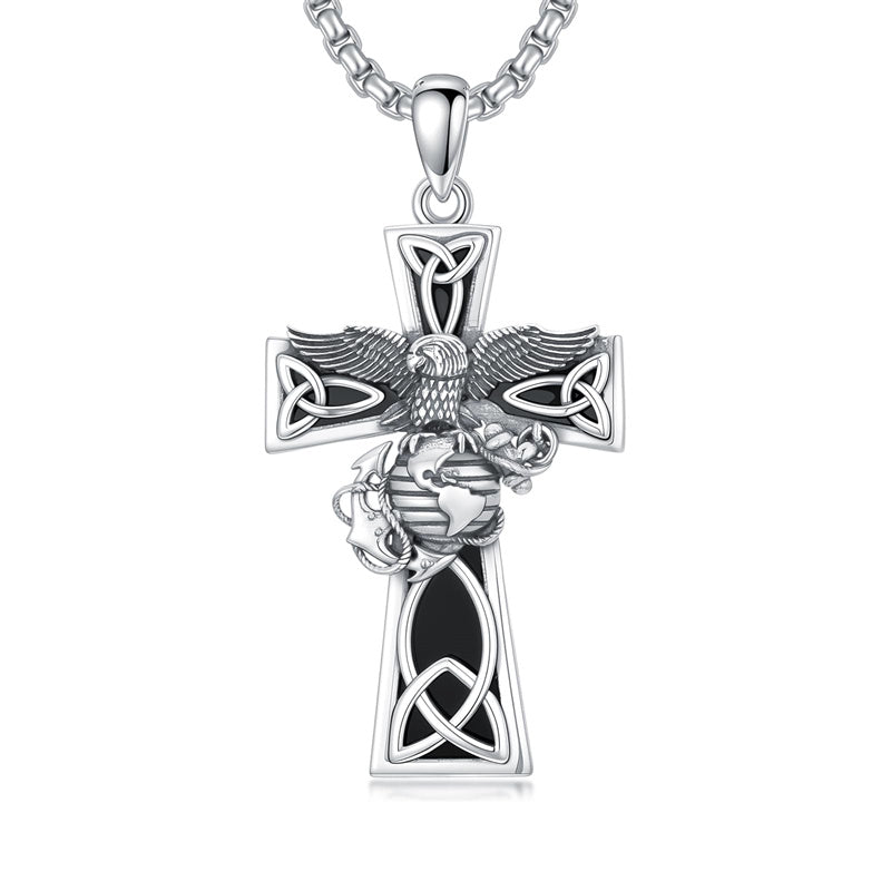 The Marines Necklace is A wider, sturdier, thicker cross pendant with the Marines' symbol, an Oxidized electroplating process, it looks very textured and advanced, could be sent to men or a husband as a special gift.
