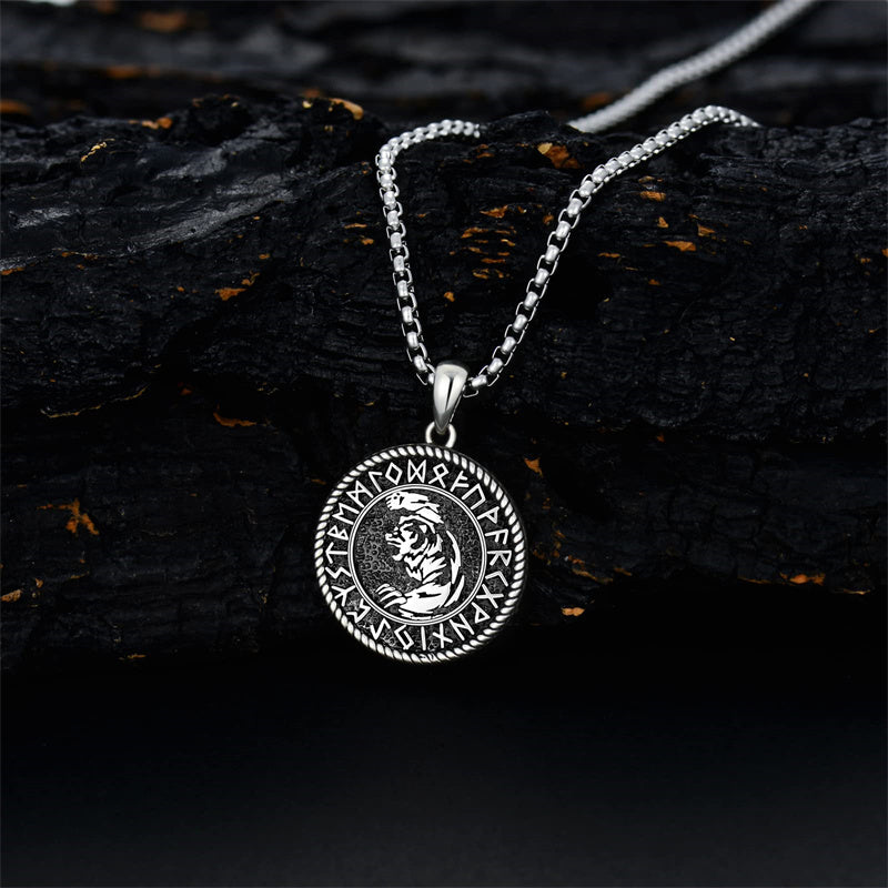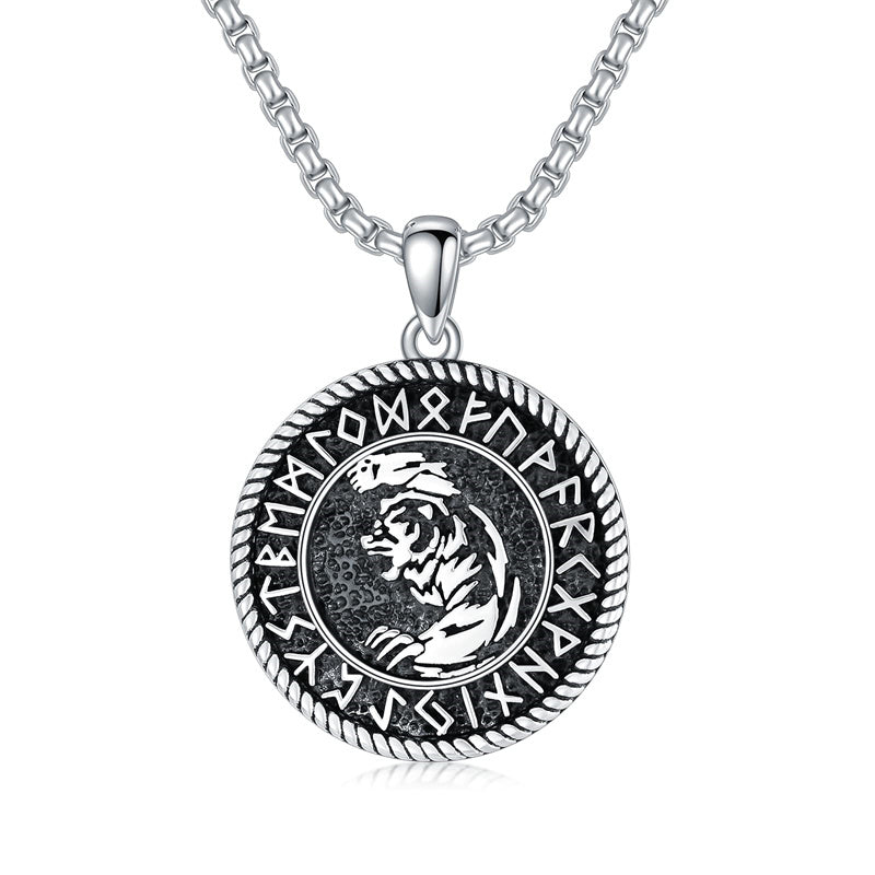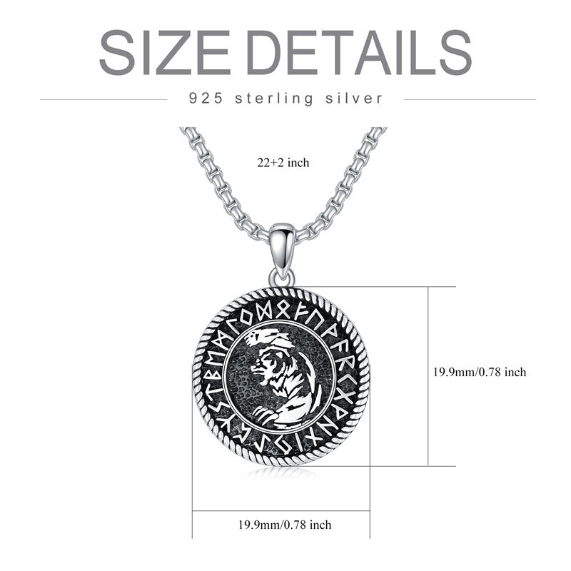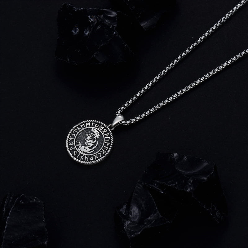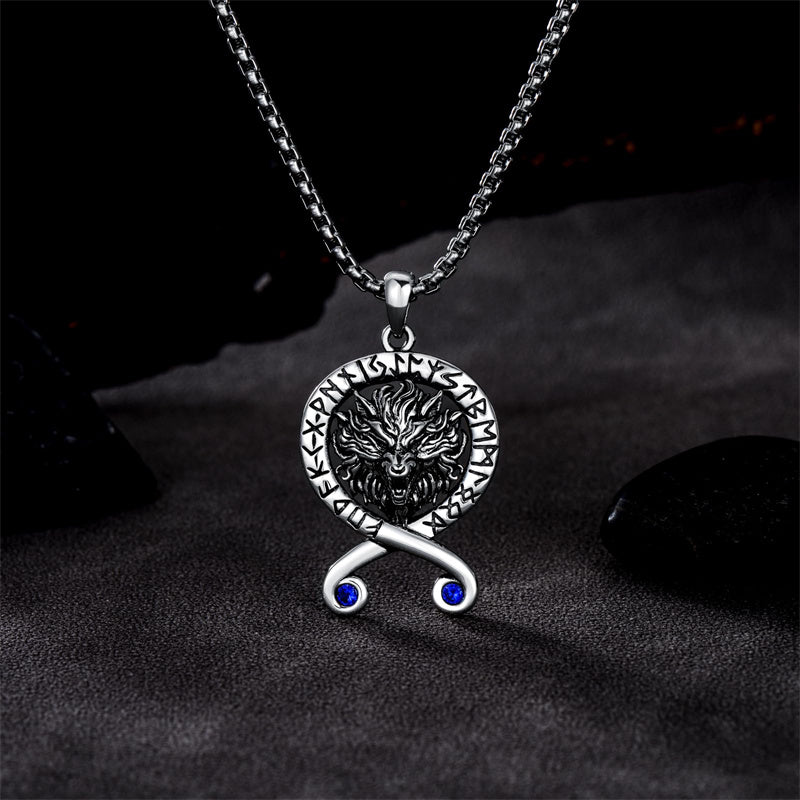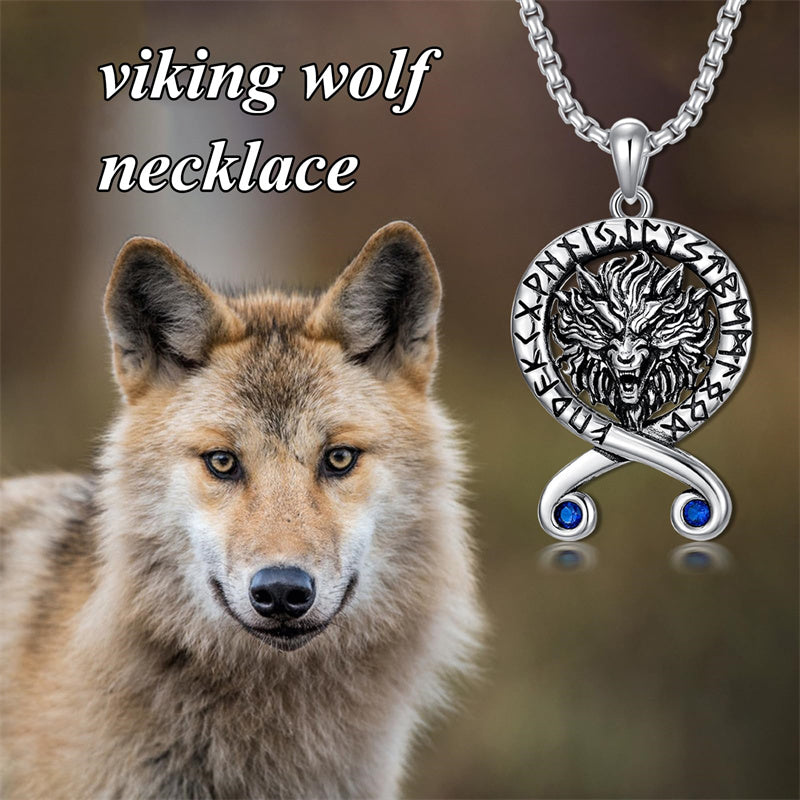 Viking Wolf: Wolves represent bravery, loyalty, protection, and wisdom.Domineering wolf head pendant surrounded by ancient Fusak runes.Norse pendant jewelry for men husband on his Birthday, Father's Day.