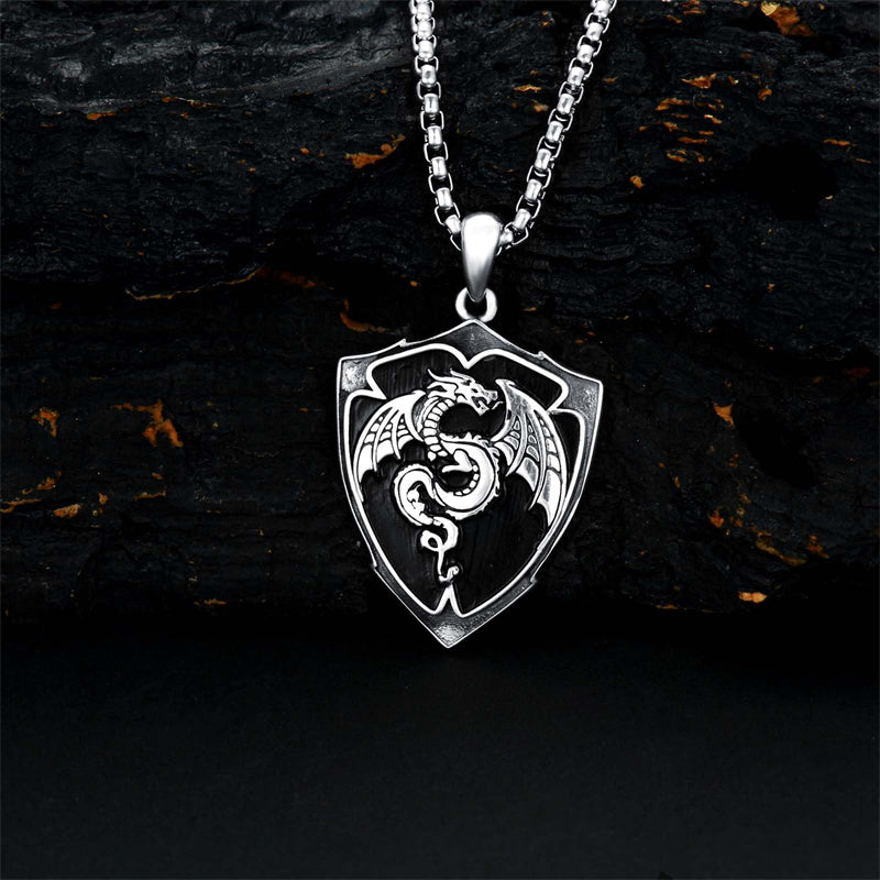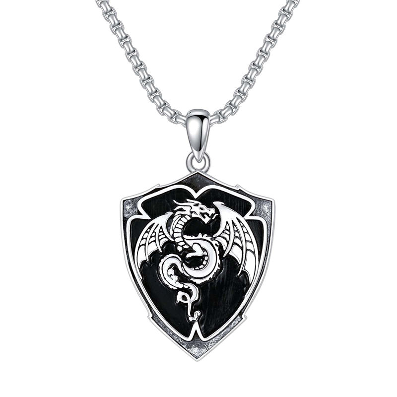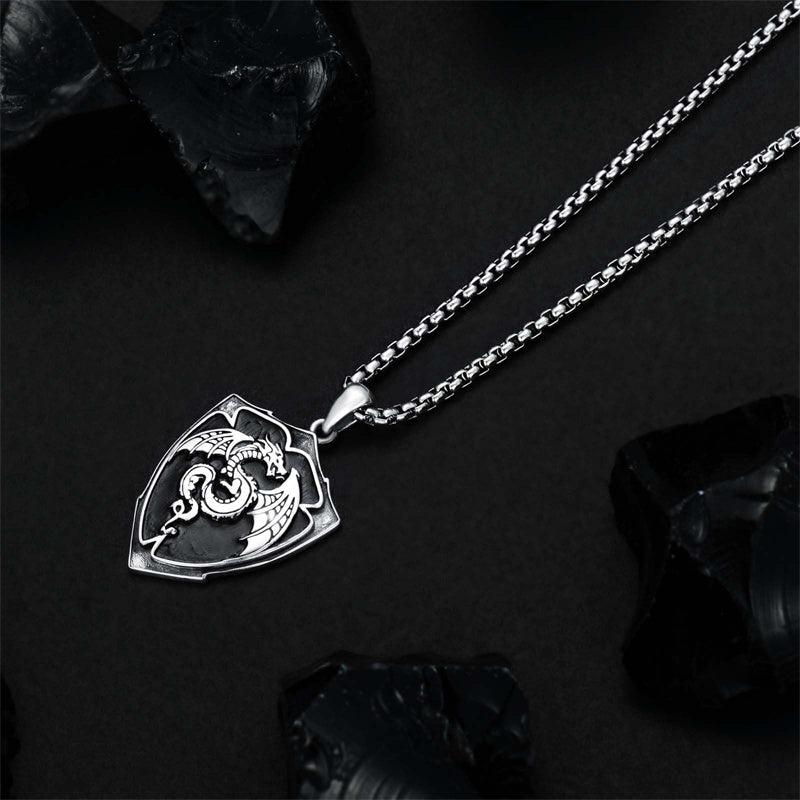 Dragon B: This is a necklace designed in a vintage style. The necklace is engraved with exquisite dragon patterns on the shape of the shield, which is simple and beautiful. The dragon represents power, courage, holiness, and other meanings. Wearing it can attract wealth, ward off evil spirits, and increase self-confidence.