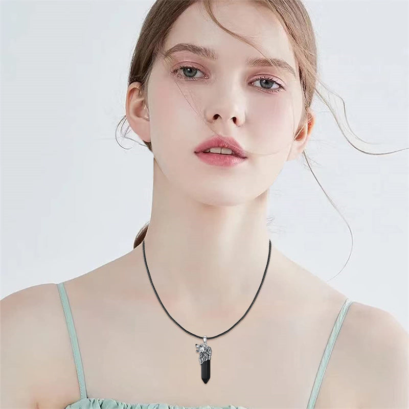 Wolf B: This is a wolf head necklace made of sterling silver. The wolf symbolizes bravery and wildness. Wearing it can make you full of confidence, go forward bravely, and have nothing to fear. There is also a black crystal under the wolf head, which adds a bit of elegance to the wildness and makes your clothing more attractive.