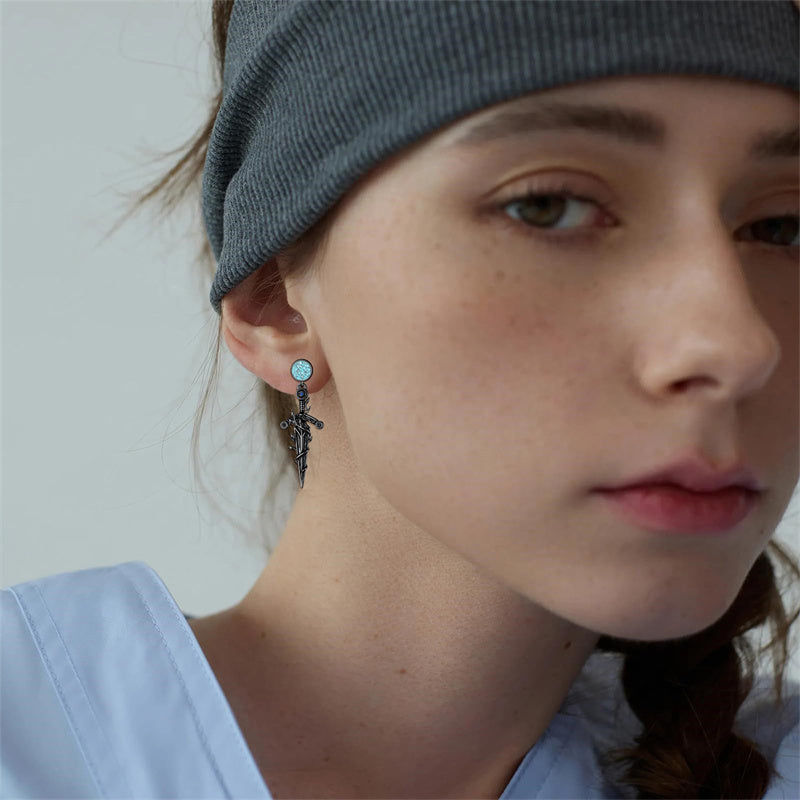 Black Turquoise Dagger Eye Earrings:Retro Rock style dagger cross earrings with blue evil eye, fashionable and cool. Perfect for costume parties, or for those who collect swords and daggers, or those who like heavy metal music or bands. Wearing these sword earrings to catch someone's attention.