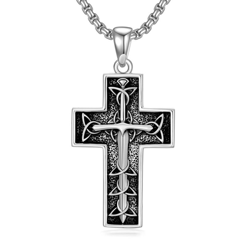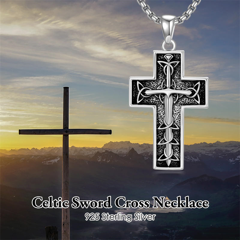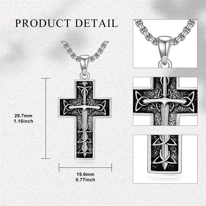 F: The cross represents protection, the sword represents marching forward bravely and overcoming obstacles, and the Celtic knot symbolizes never-ending. We combined these three elements to design this Celtic Knot Sword Cross Necklace. We hope that those who wear it will never give up solving difficulties when they encounter them. Keep going, and God will bless you.