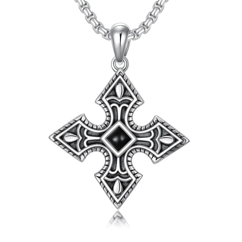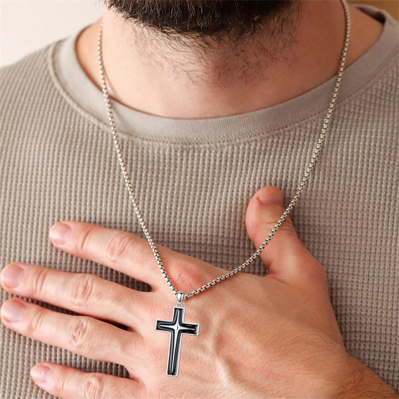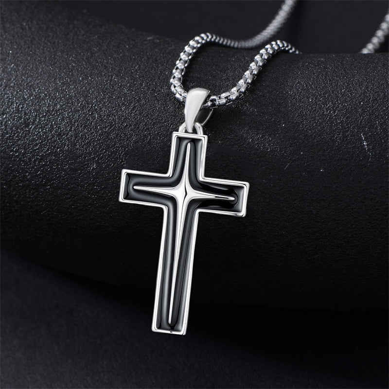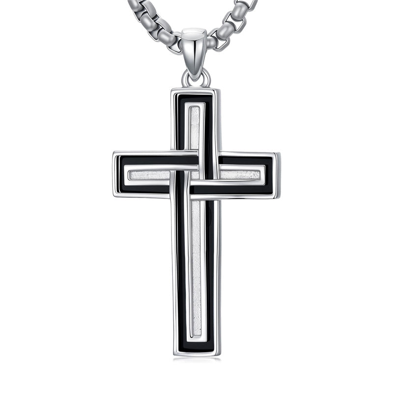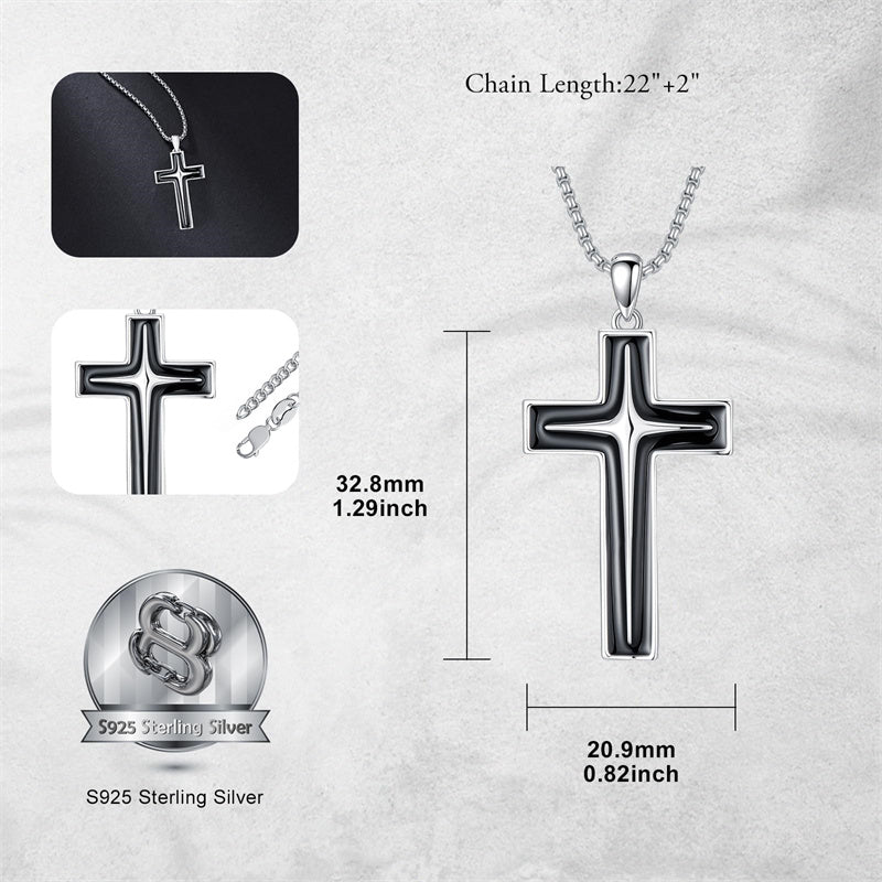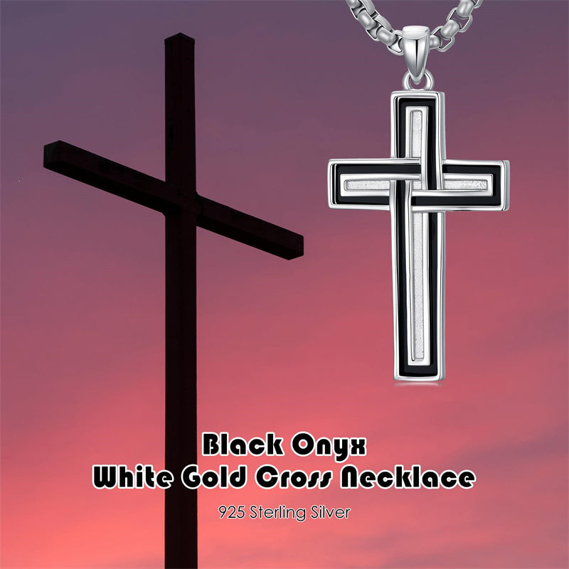 I: The cross is a jewelry with special meaning; it represents religious belief, protection, and blessing. This black and white cross is beautifully designed; whether it is used for prayer or given to others, it is a very good choice.