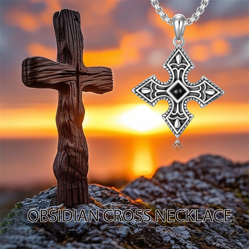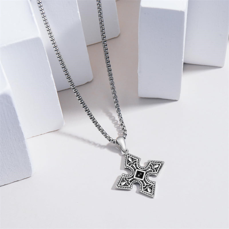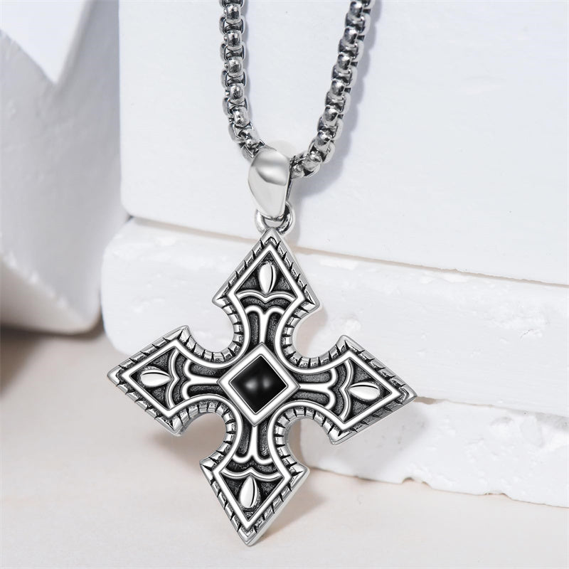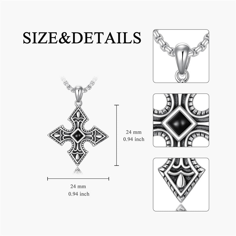 G: This cross necklace is made of black agate and patterns. Black agate can remove negative energy from the body and environment, and help us build a protective barrier, so that we can maintain a positive, optimistic, and strong state and resist external interference. When you wear this black agate cross necklace, you can not only use it to pray, but also get the powerful energy of black agate from it.