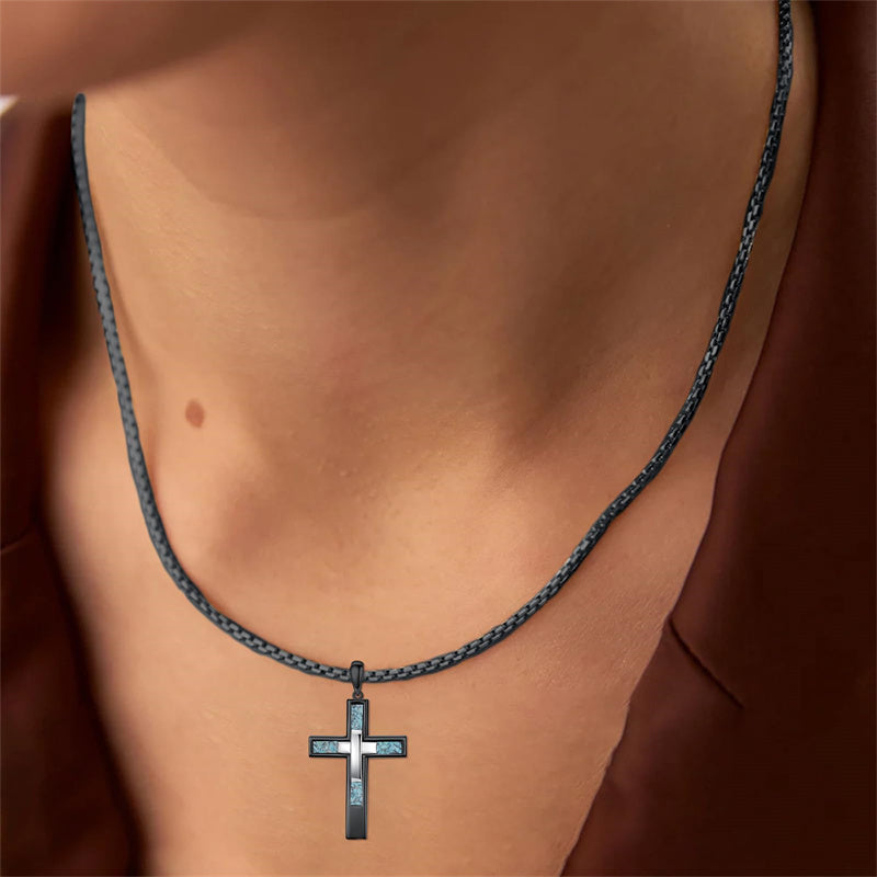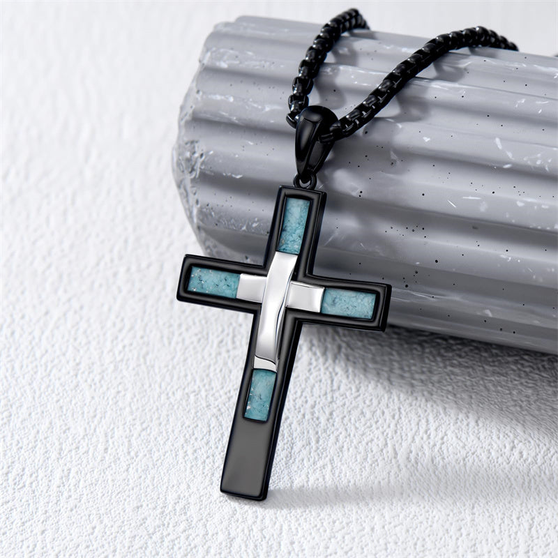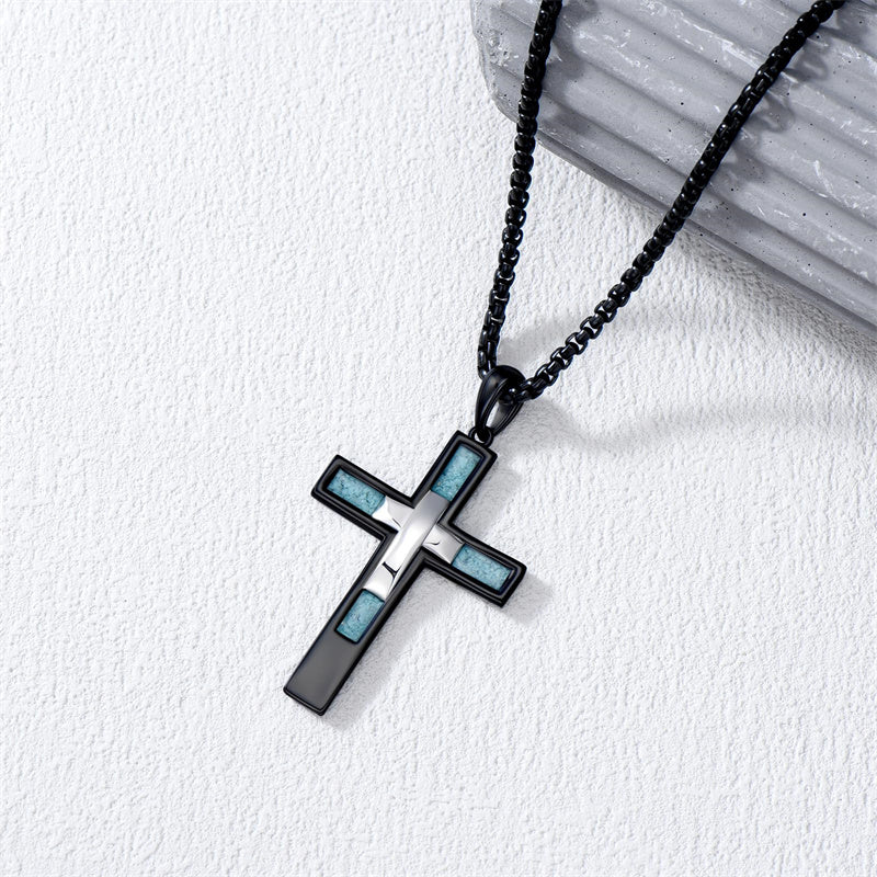 B: The cross represents love, redemption, and hope, conveying the yearning and belief for a better life. We used black dripping glue to make this cross necklace. The tough texture of black dripping glue implies the unyielding tenacity in the face of life challenges, giving the wearer inner strength and courage.