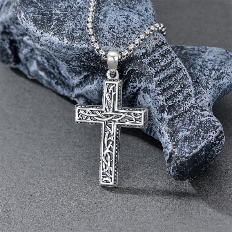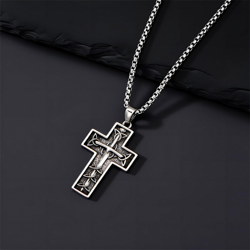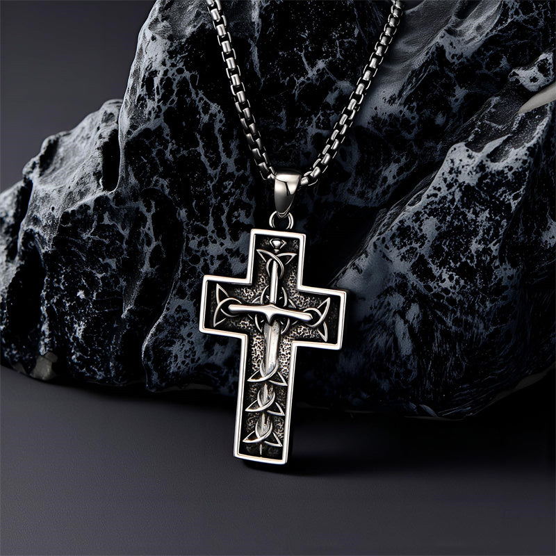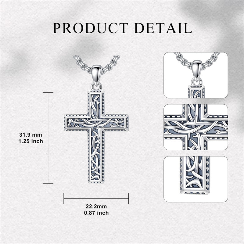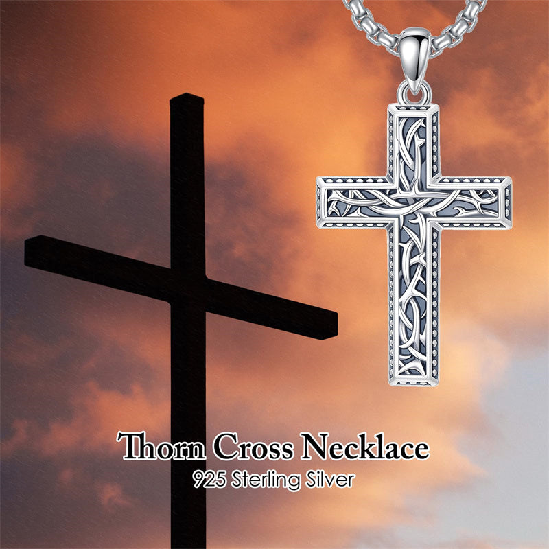 A: This thorn cross necklace is inspired by the Christian faith. Thorns and crosses are symbols of the crucifixion of Jesus. I hope that wearing this thorn cross necklace can make you feel the redemption, love, and salvation in your faith.