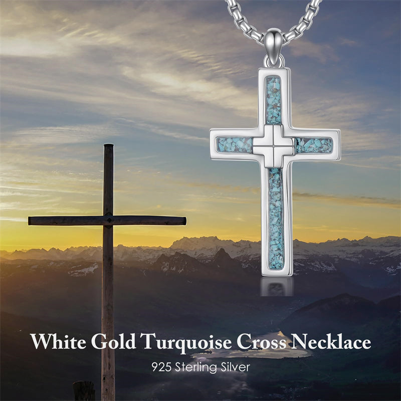 C: We perfectly combine turquoise and a cross to design this unique turquoise cross necklace. I hope you like this turquoise cross necklace. You can use this cross necklace to pray to God, and God will bless you.