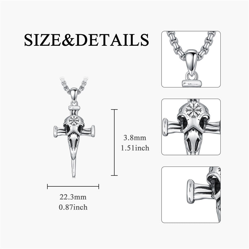 H: The raven skull symbolizes wisdom, freedom, and luck, and is also associated with the most powerful god, Odin. This crow skull necklace is a protective talisman with divine power. Wearing it can bring you courage and strength to face all difficulties.