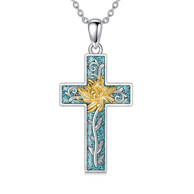 Chrysanthemum Cross Necklace: The chrysanthemum is the birth flower in November. The chrysanthemum has the sweetest nickname of "Mum". The message that the chrysanthemum brings to us is that even in early winter, there can be joy and beauty.