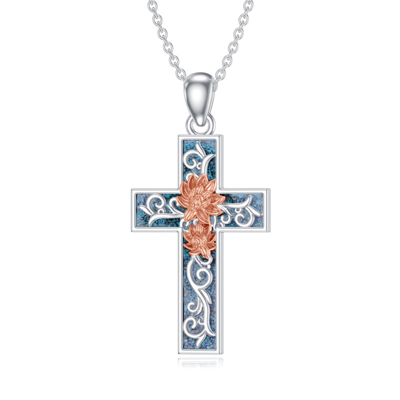 Peony Cross Necklace: Peony is the birth flower in September. Peony is unique. A peony will bloom for more than 100 years, year after year, and it will bloom as scheduled every year. If you want to give to a lover born in September, the peony necklace is your best choice!
