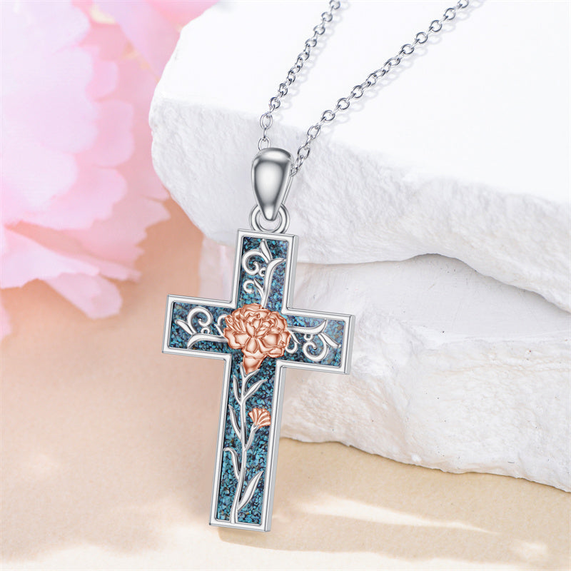 Lily Cross Necklace: Lily is the birth flower of May. This plant is decorated with exquisite small bells and has the sweetest smell. Its name means "return to happiness". It represents all the little things in life that can bring us happiness. If you want to give a lover born in May, the Lily cross turquoise necklace is your best choice!