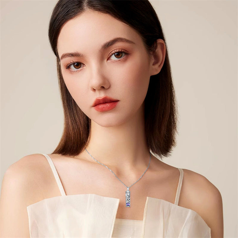 July Birthstone Birth Flower Urn Necklace: Larkspur is a birth flower of July, a symbol of love, devotion, positivity, and sincerity.