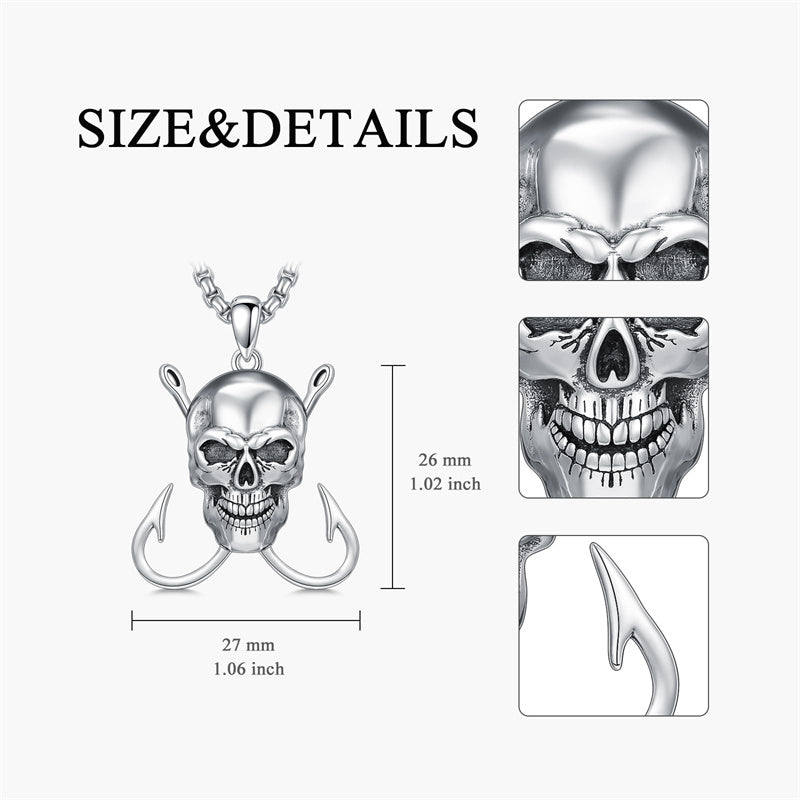 Skull Necklace: This unique necklace combines a fishhook and a skull. The fishhook is a traditional symbol of strength, determination, and protection. It’s suitable for people who love hunting or fishing.