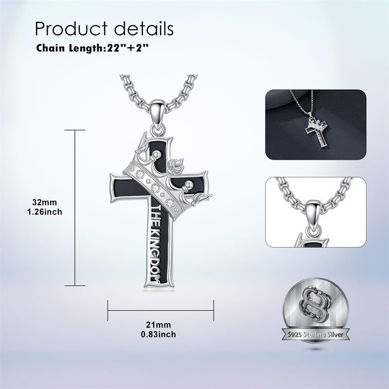 Crown Cross A: Meaningful Design: The cross stands for faith; the crown, for the glory that follows. Together, they remind us that true victory comes through unwavering belief. This cross necklace with a crown serves as a daily reminder of spiritual strength, hope, and the eternal promise of salvation, making it an ideal expression of faith for both men and women.