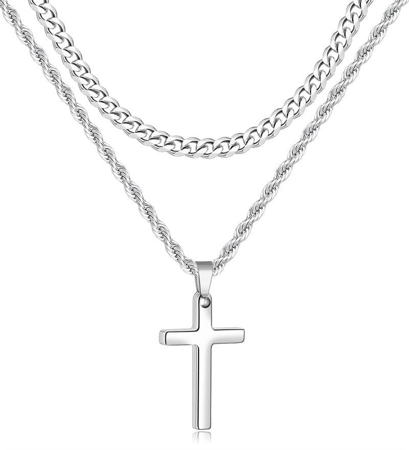 Chain Length: Stainless steel 3.0mm 22-inch rope chain + 5.0mm 20-inch Cuban chain